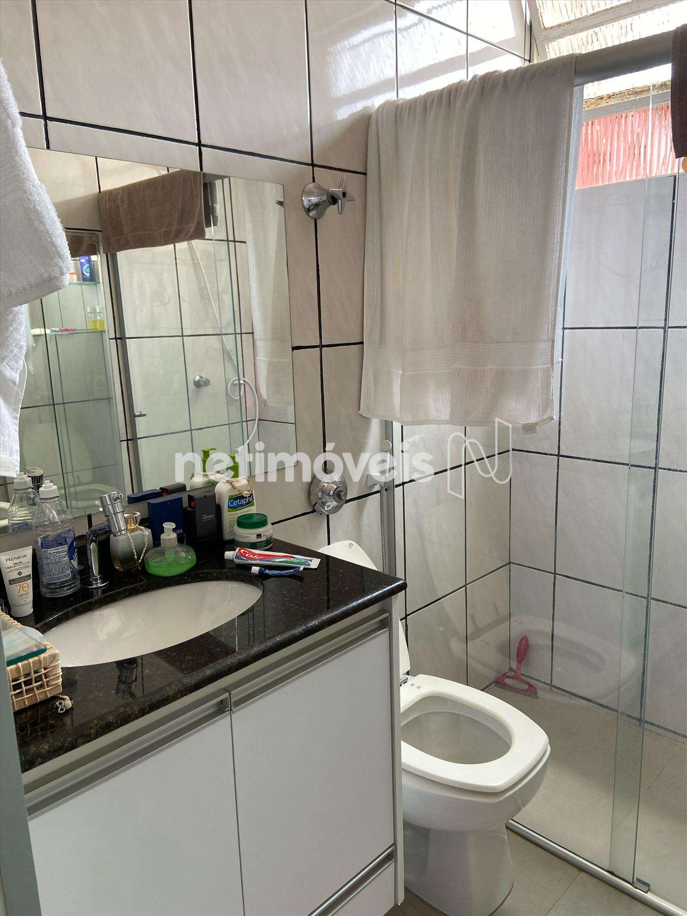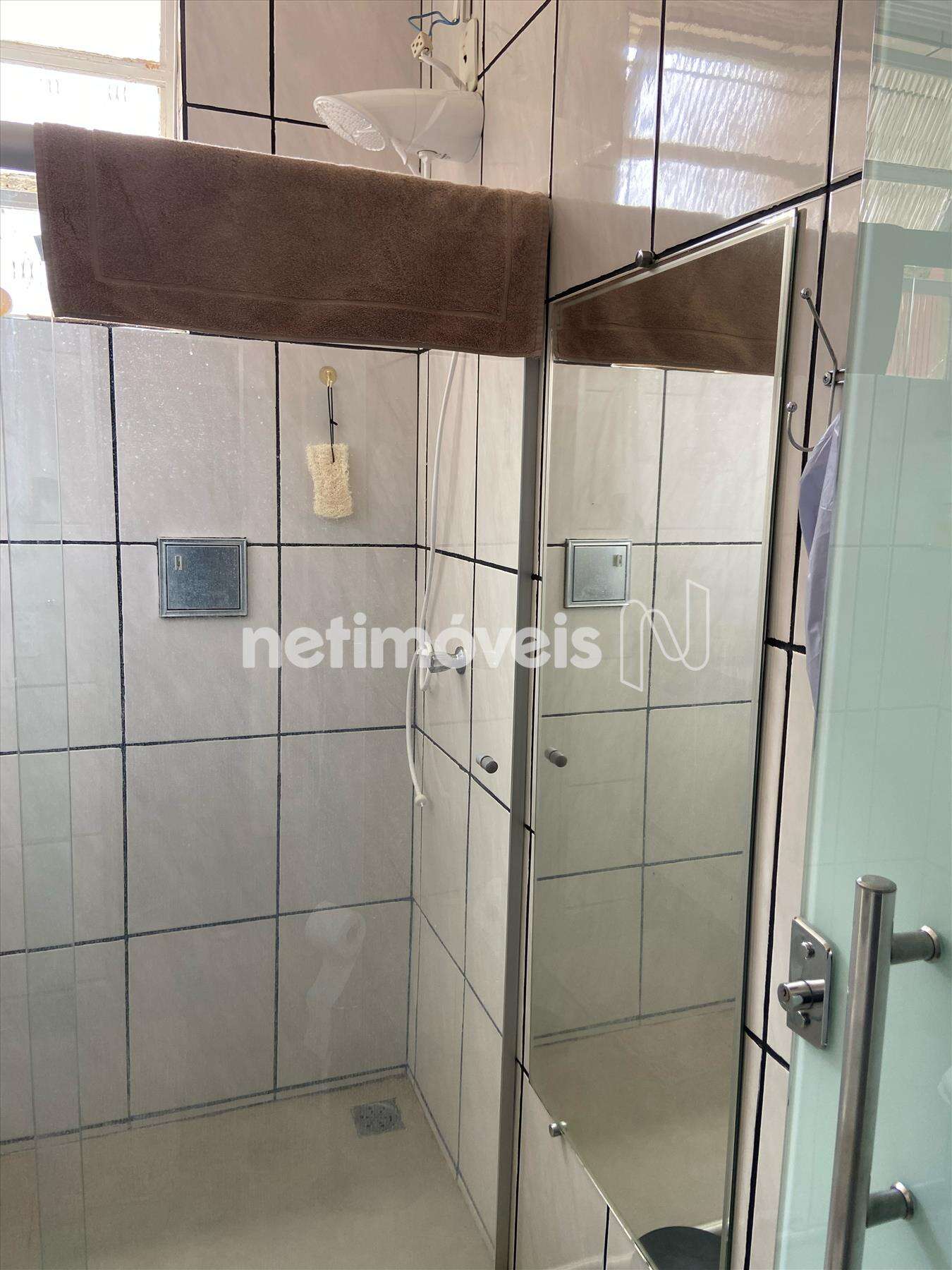 Banheiro social com armários, box em blindex, bancada e piso em granito, oferecendo praticidade e acabamento de alto padrão.