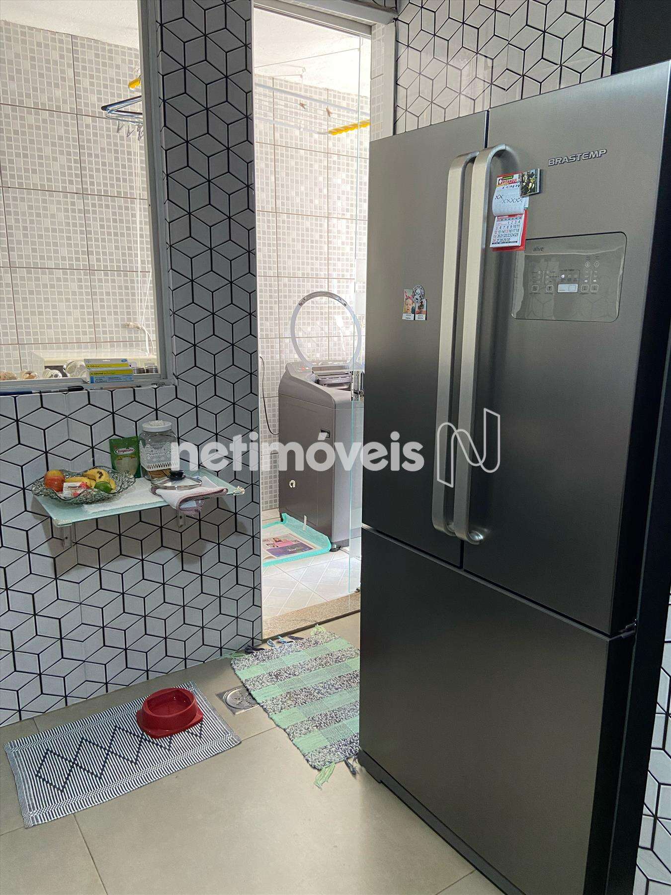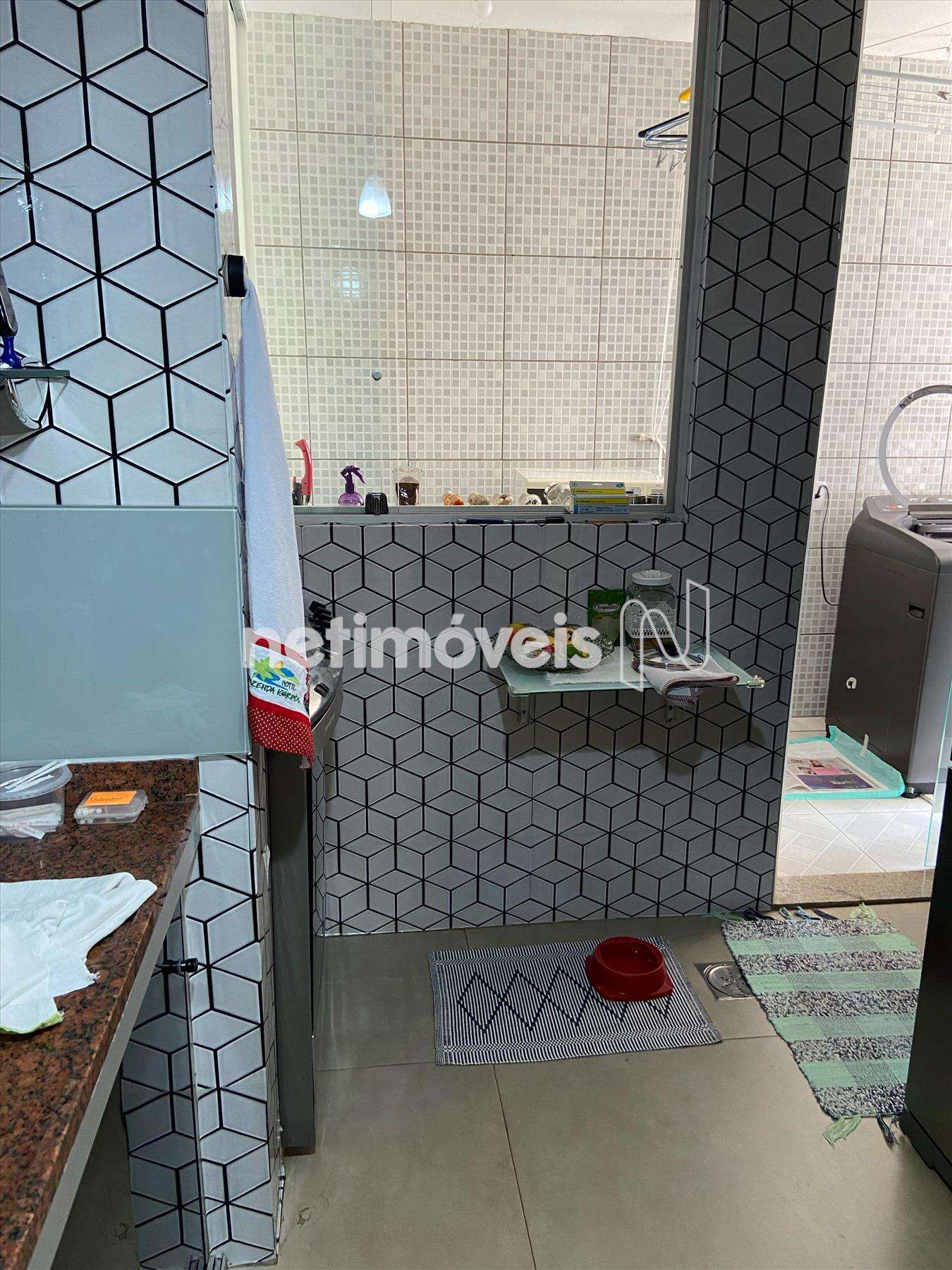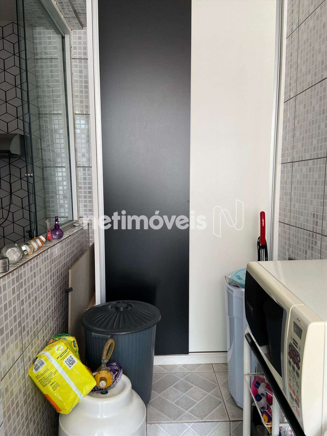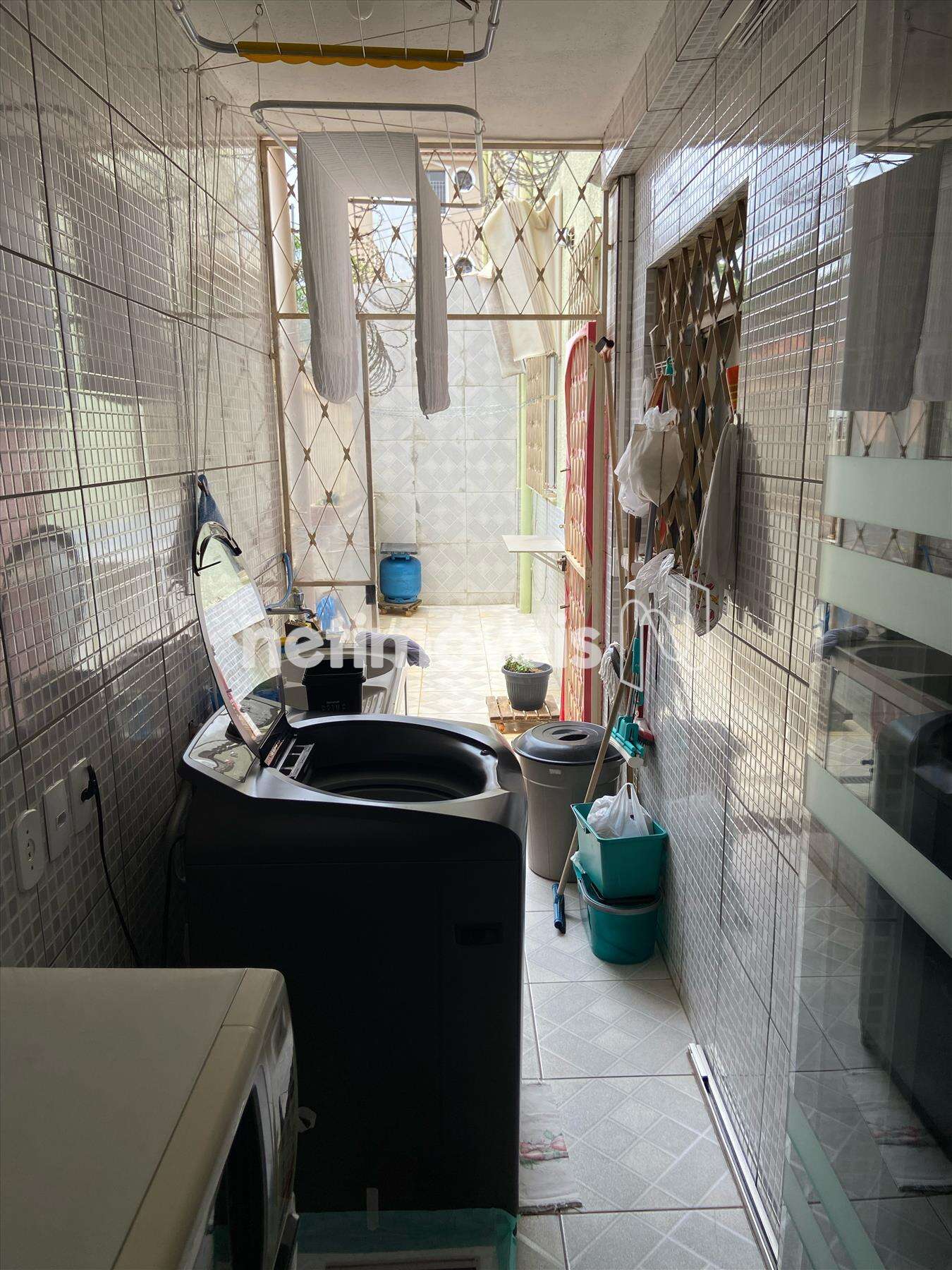 Área de serviço independente e banheiro de empregada, ambos com acabamentos semelhantes aos da cozinha.