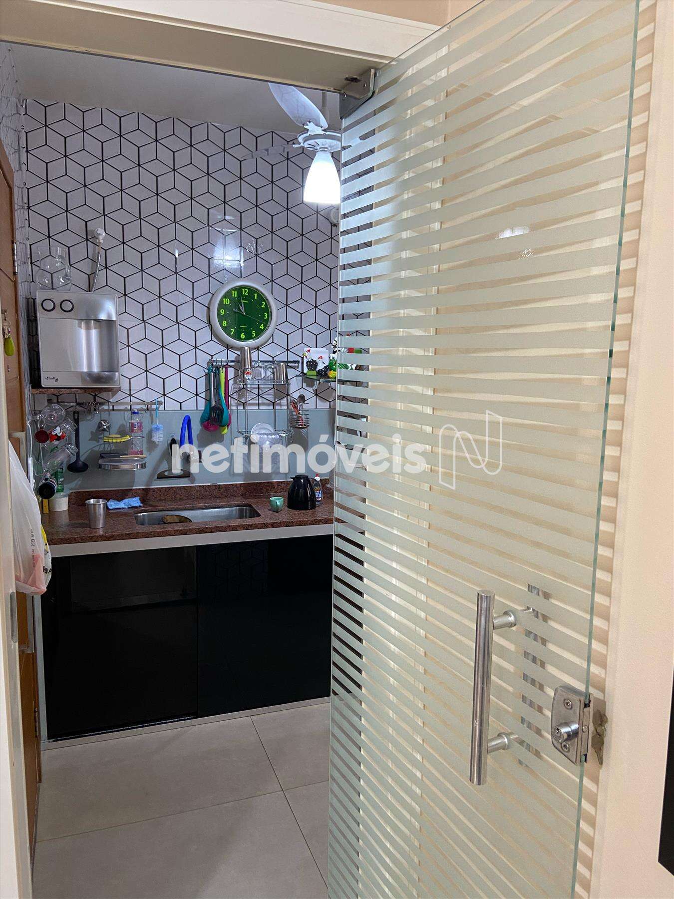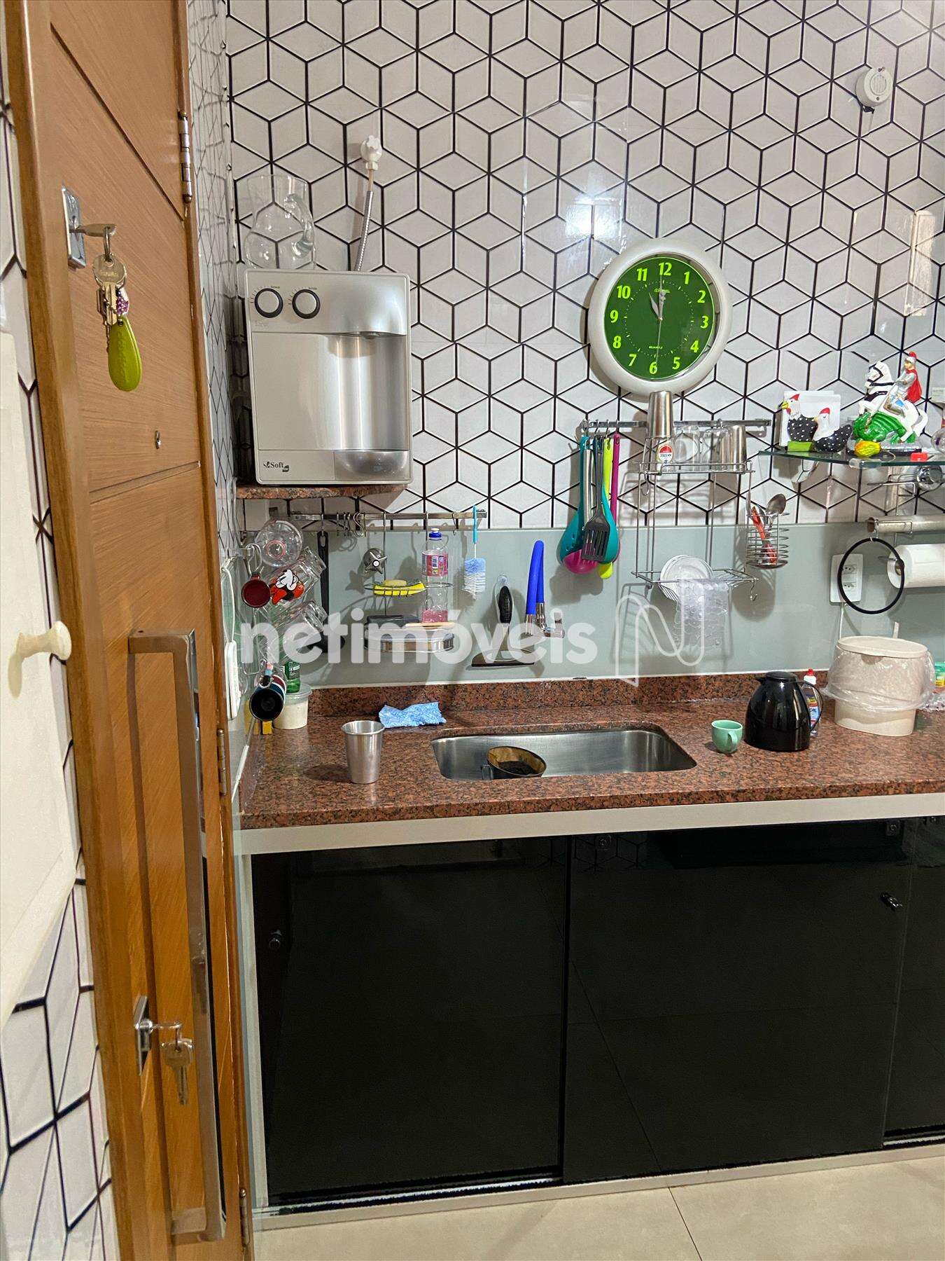 Cozinha planejada com armários, bancada e piso também em granito, ideal para o dia a dia.