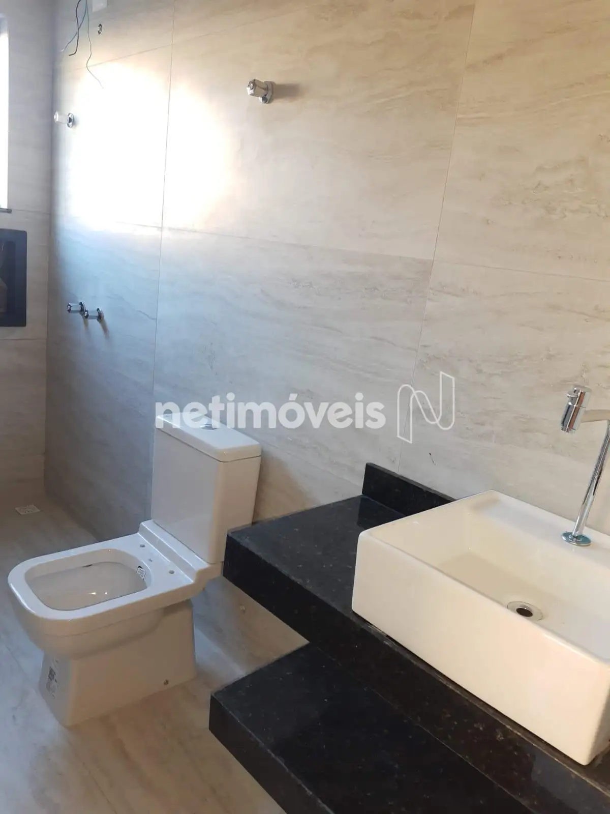 Banheiro da suíte com bancada em granito e cuba embutida