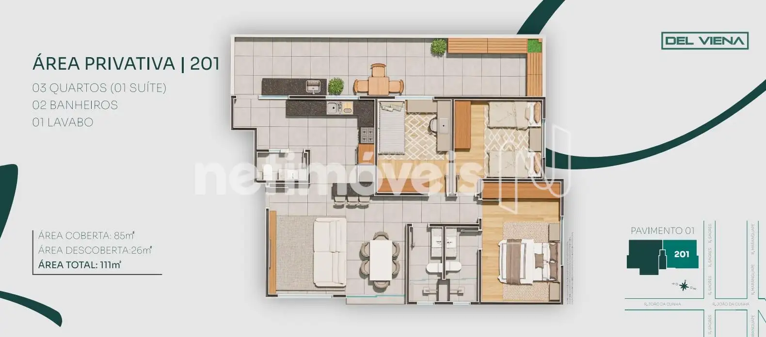 À venda, este incrível imóvel com 3 quartos, 2 banheiros e 1 lavabo, perfeito para você e sua família! Com uma área privativa de 84m² e uma área descoberta de 42m², totalizando 127m² de espaço, este imóvel oferece o conforto e a privacidade que você procura.