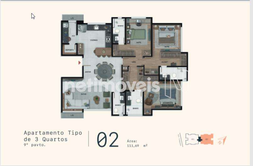 O prédio tem lazer completo, quadra poliesportiva, piscina com raia, espaço gourmet, salão de festas e academia, medidores individuais de água e gás (canalizado), aquecimento solar nos banhos, energia fotovoltáica nas áreas comuns, Infraestrutura para ar condicionado, Infraestrutura para carregamento elétrico de automóveis, 2 elevadores de última geração. Ainda conta com espaço para locker, coworking e espaço pet, depósito de lixo com separação, 2 vagas de garagem de nºs. 45 e 46 (1º PVTO).