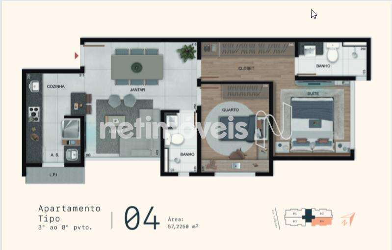 Apartamento 57,22m² (Armários, espelhos, box e luminárias)