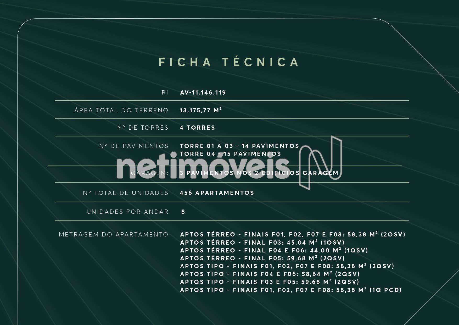 - Unidades tipo de 2 quartos com 58,38 m² a 59,68 m².