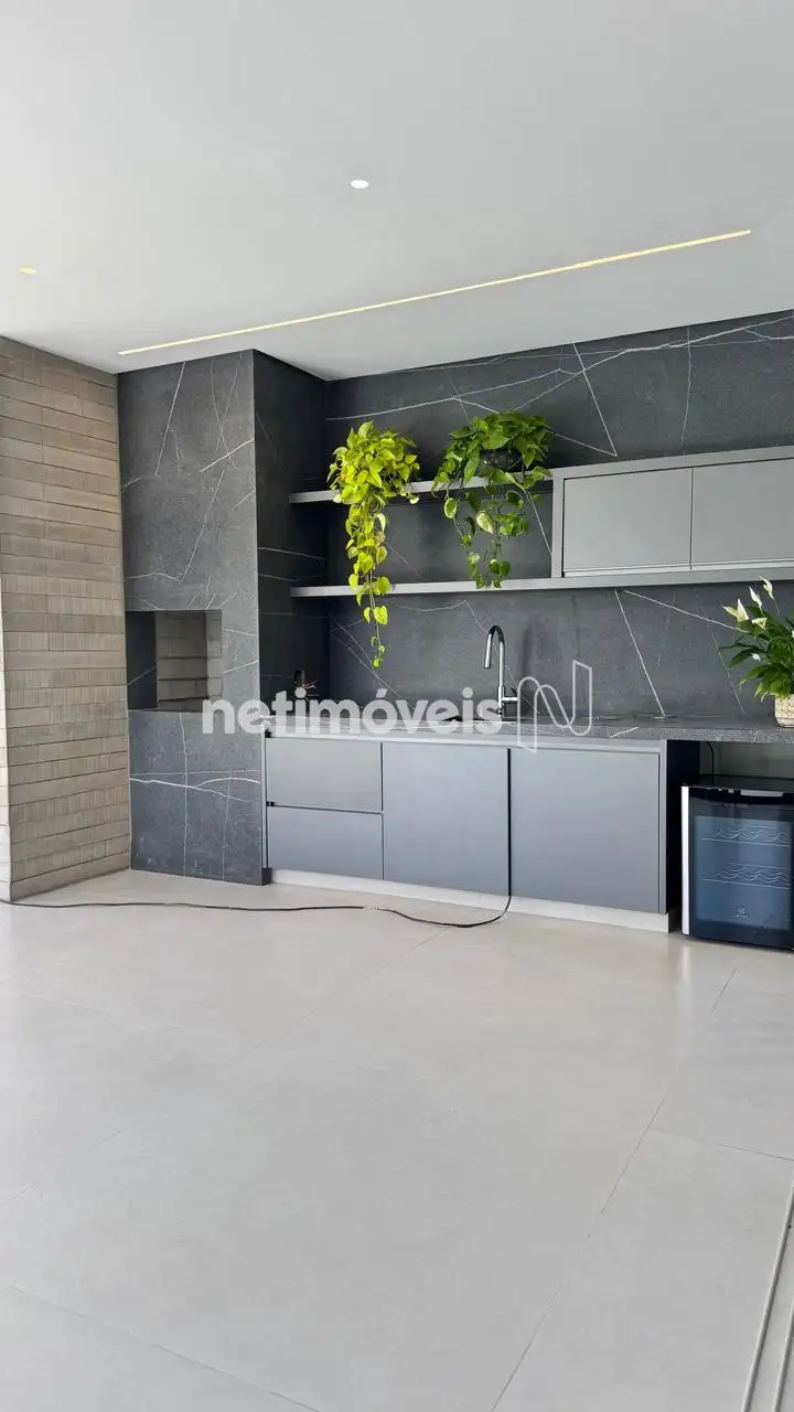 Casa de 382m² de área contruída, divida em 2 pavimentos com quatro suítes, todas com armários e ar-condicionado; sala para dois ambientes (sala de TV e jantar), cozinha integrada com área gourmet e sala e equipada com cooktop, coifa, fornos elétricos, microondas e armários completos;