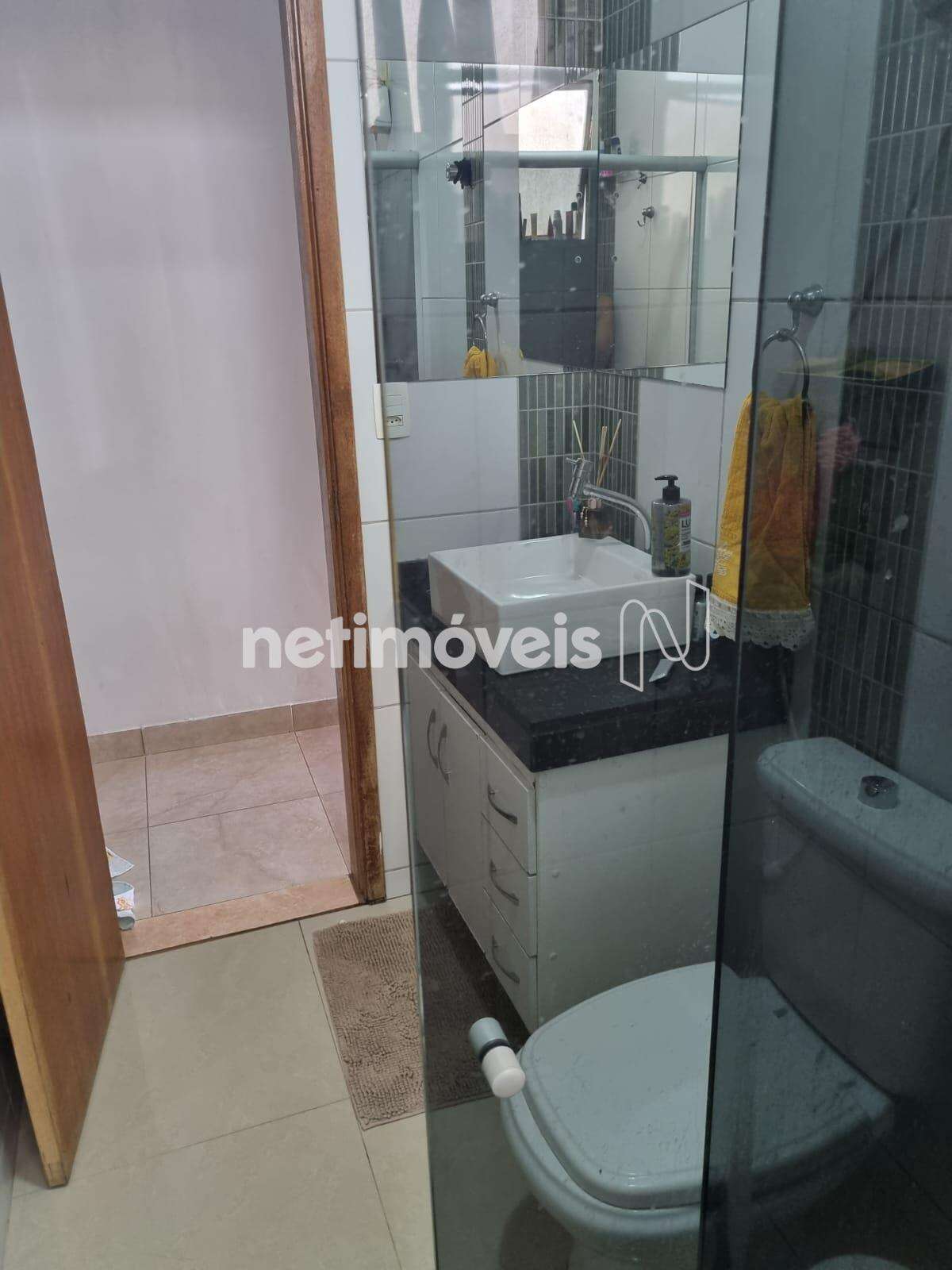 - Banheiro reformado, com armário sob a pia e box blindex;