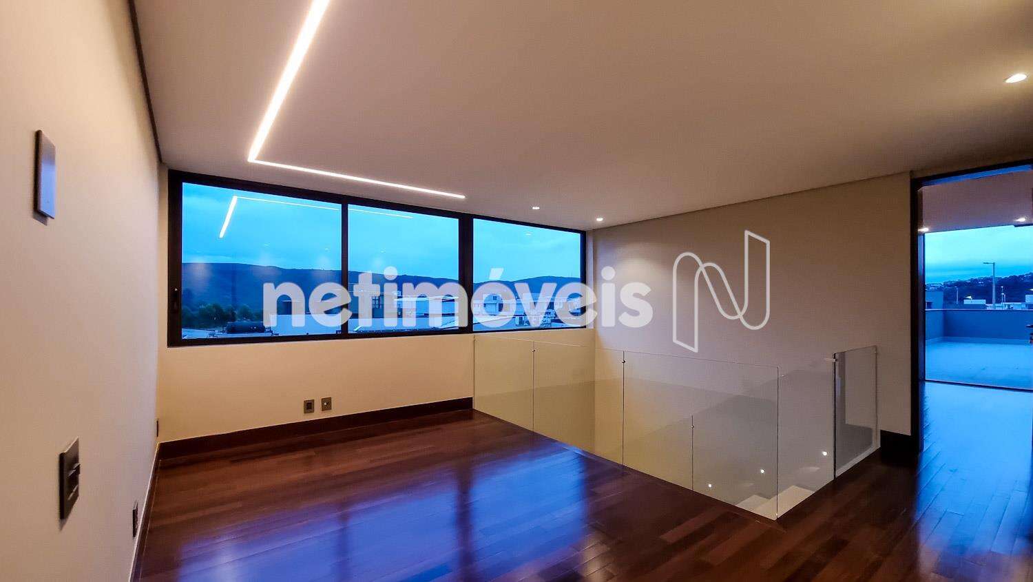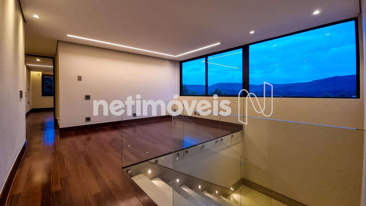 No andar superior, o mezanino, versátil, pode ser transformado em uma sala íntima de TV. Espaço para rouparia/copa de apoio, 4 suítes, sendo uma delas com ampla varanda, oferecendo flexibilidade de uso, como quarto de hóspedes/escritório.