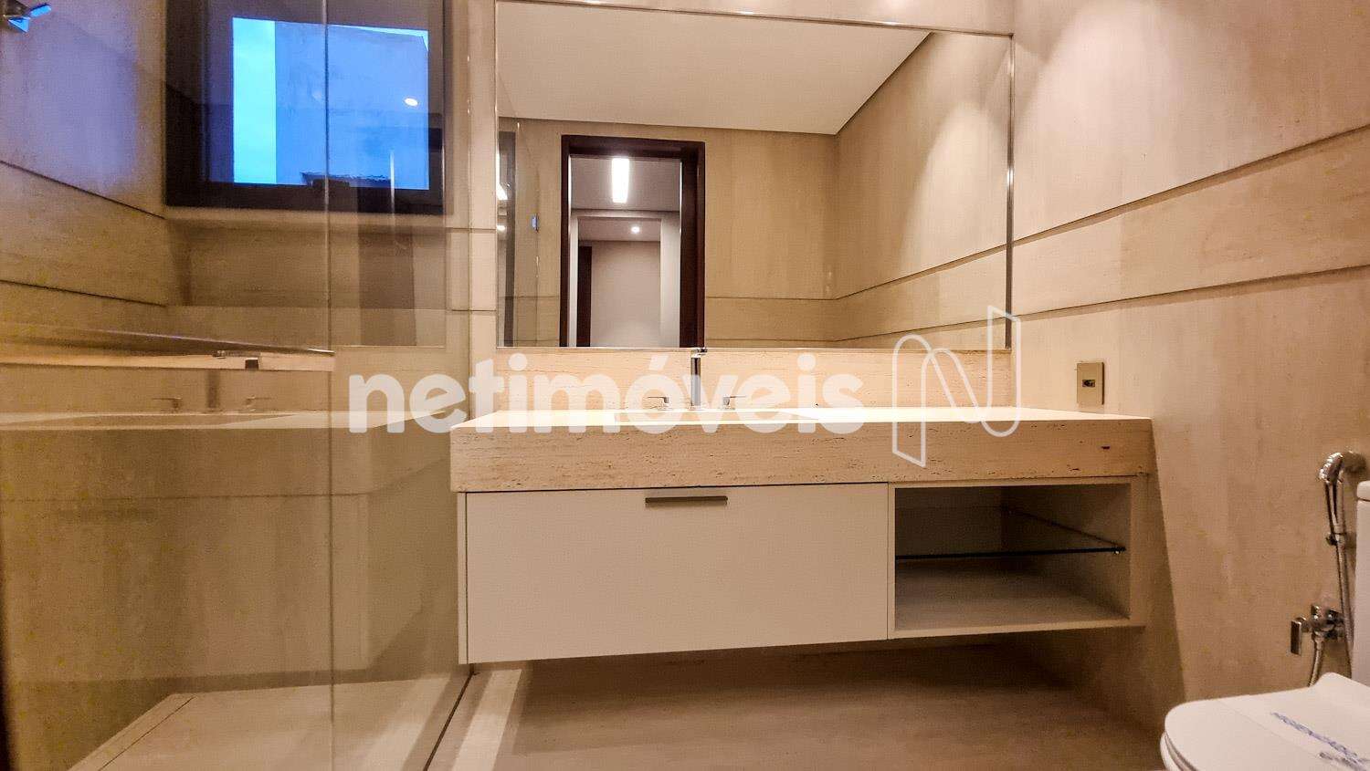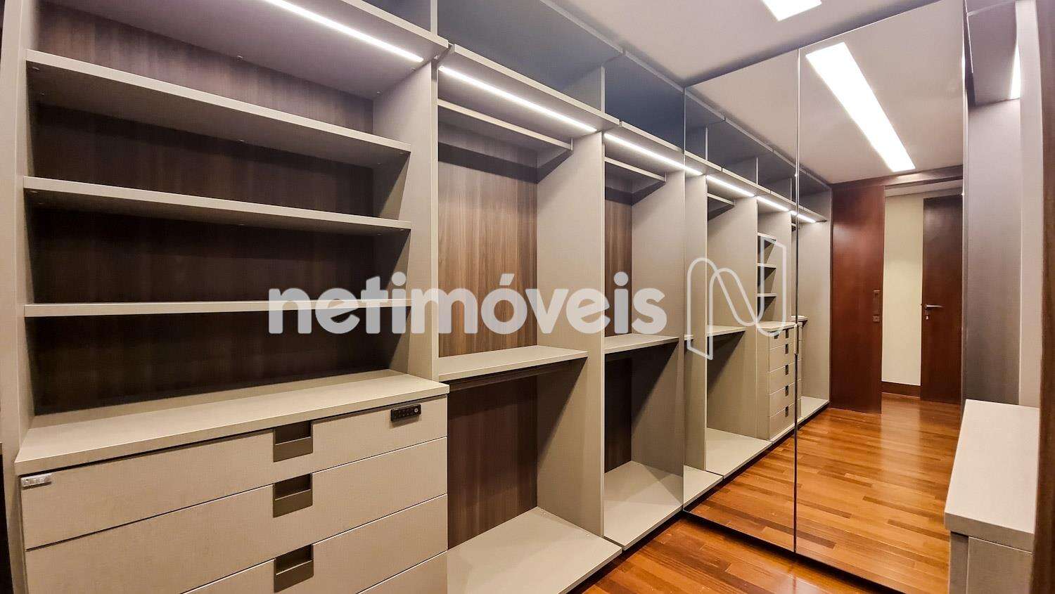 Com 4 quartos, sendo todos suítes com closet e ar condicionado, pisos Indusparquet, persianas automatizadas, armários L´Idea, projeto luminotécnico, banhos com bancadas em Mármore Travertino Romano e banheira Jacuzzi de imersão, na suíte master.