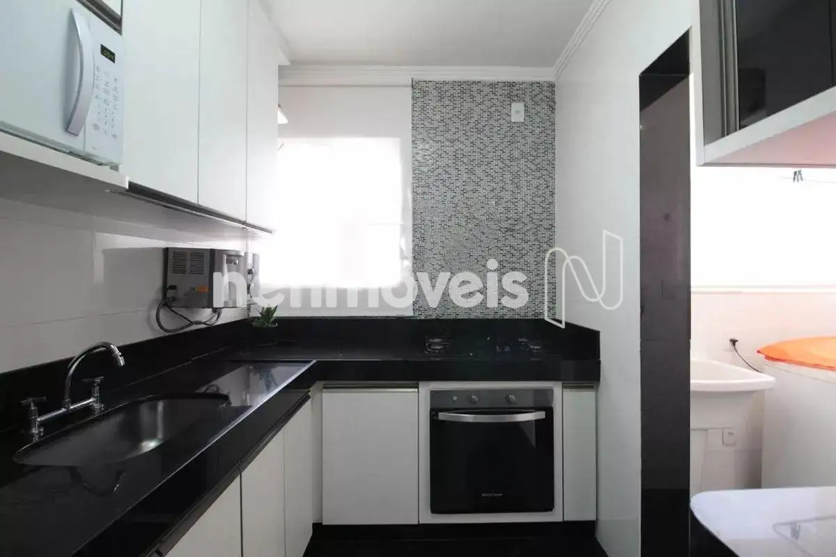 Cozinha moderna, com armários planejados, fogão cooktop e forno, piso e bancada em granito. O espaço ideal para quem ama cozinhar. Área de serviço. Cobertura com area descoberta, e ducha.