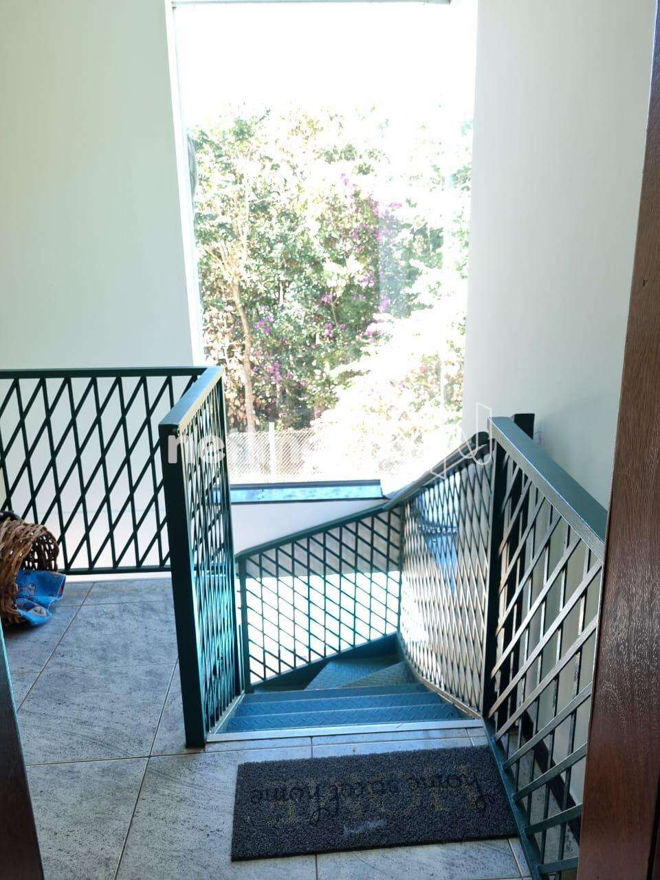 Chácara com 5.000 m2 em condomínio fechado. Portaria e segurança 24 horas. Sede com salão de festas, banheiros, cozinha. Imóvel com área construída de aproximadamente 530 m2. 5 quartos espaçosos, sendo 4 suítes. Sendo 3 com ármarios, sacadas com vista para mata e montanhas. Rouparia, banheiro social. Corredor com iluminação natural, claraboia. Amplas sala de estar com pé direito alto e sala de jantar. Cozinha com armário planejado, despensa e conta com água quente. Piscina com hidromassagem, cascata e casa de máquinas completa, já com toda instalação para aquecimento. Canil, gatil, galinheiro, curral, quarto de despejo e uma cozinha e banheiro de apoio. Aquecimento solar. Com área de mata preservada, jardins e pomar produzindo. Água do condomínio é de nascente com tratamento próprio. Vagas cobertas para 8 carros.