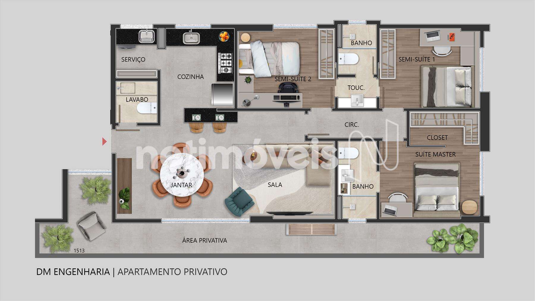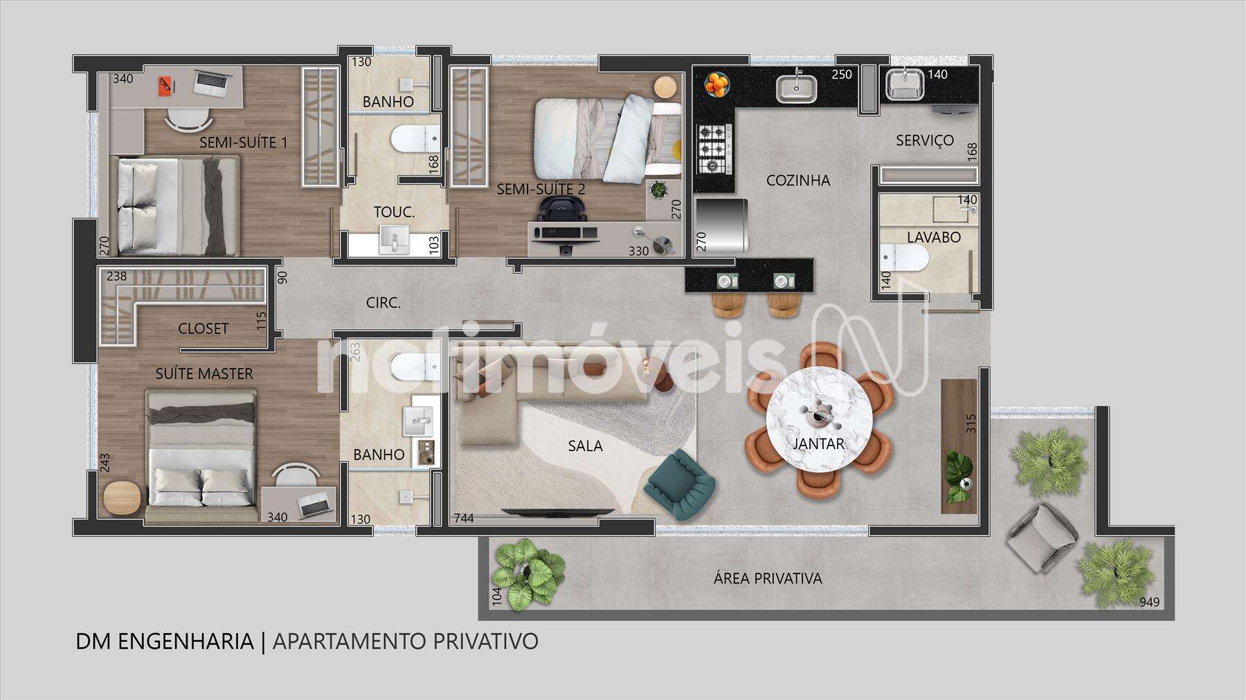 - Áreas privativas com 101,46m² e 107,99m².