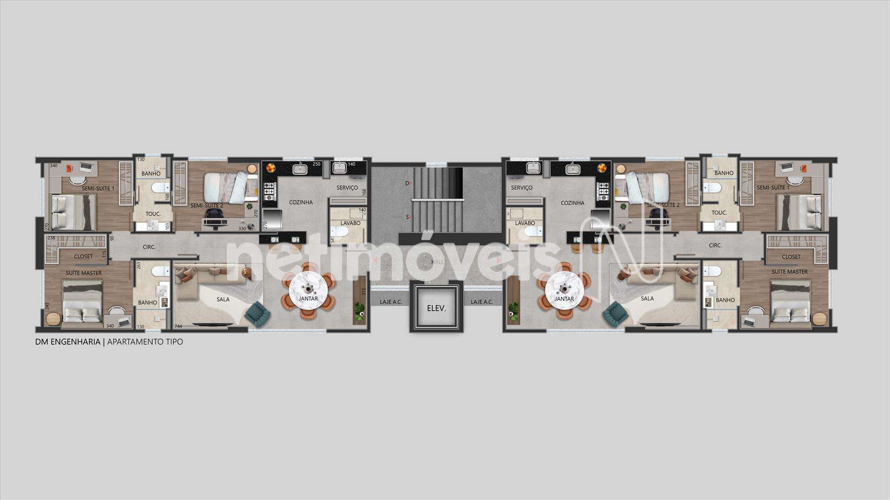 - Apartamentos tipo com 86,74m².