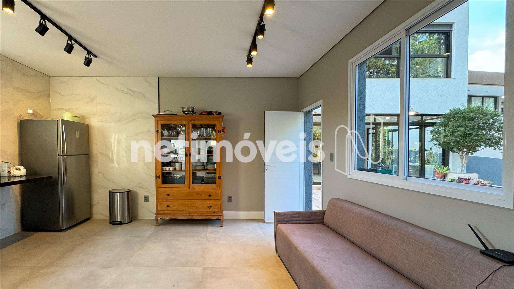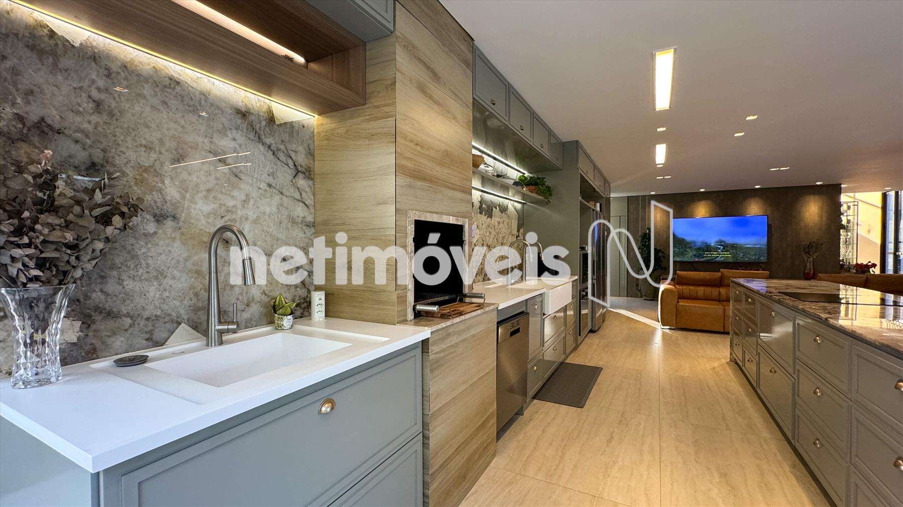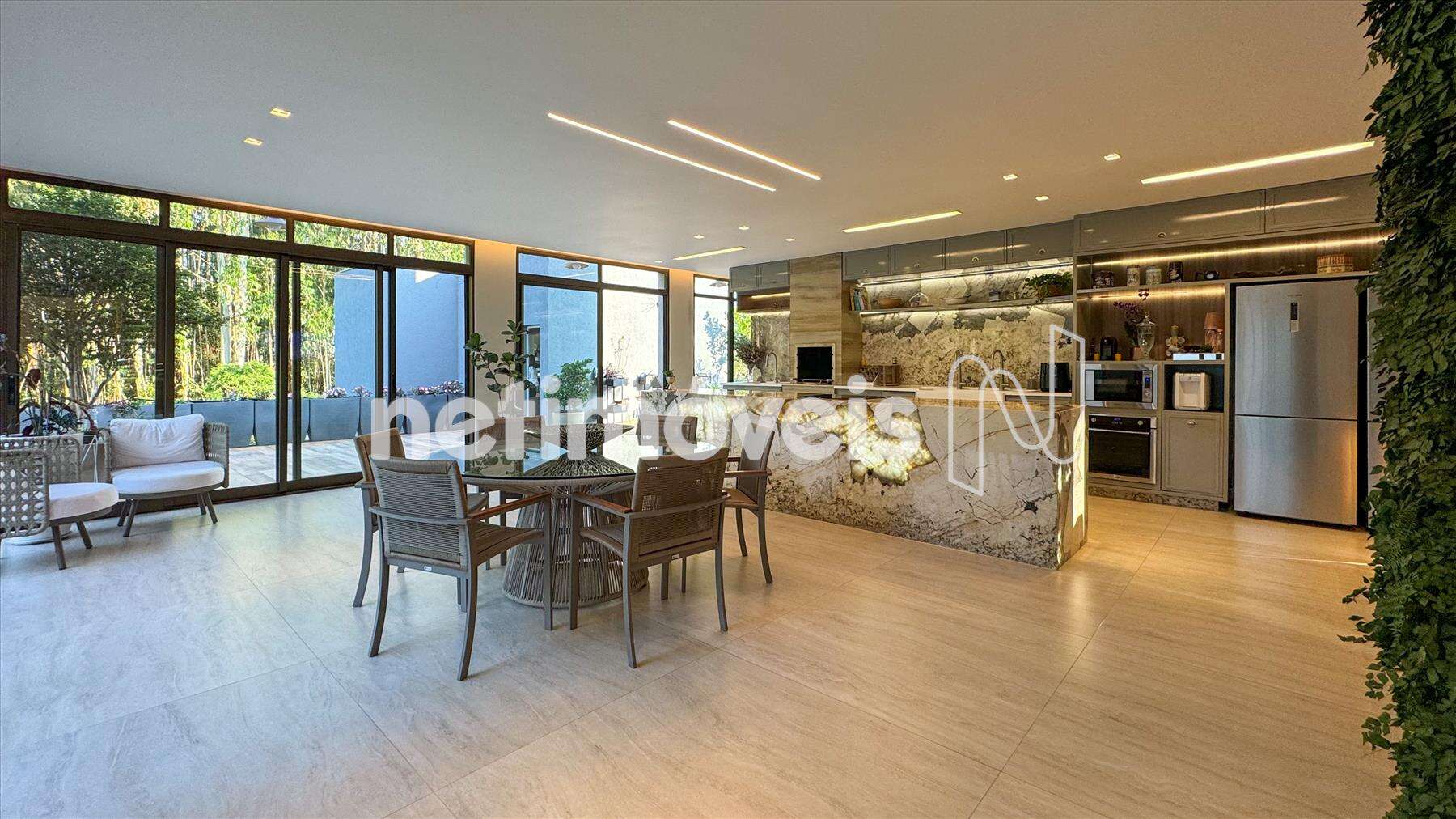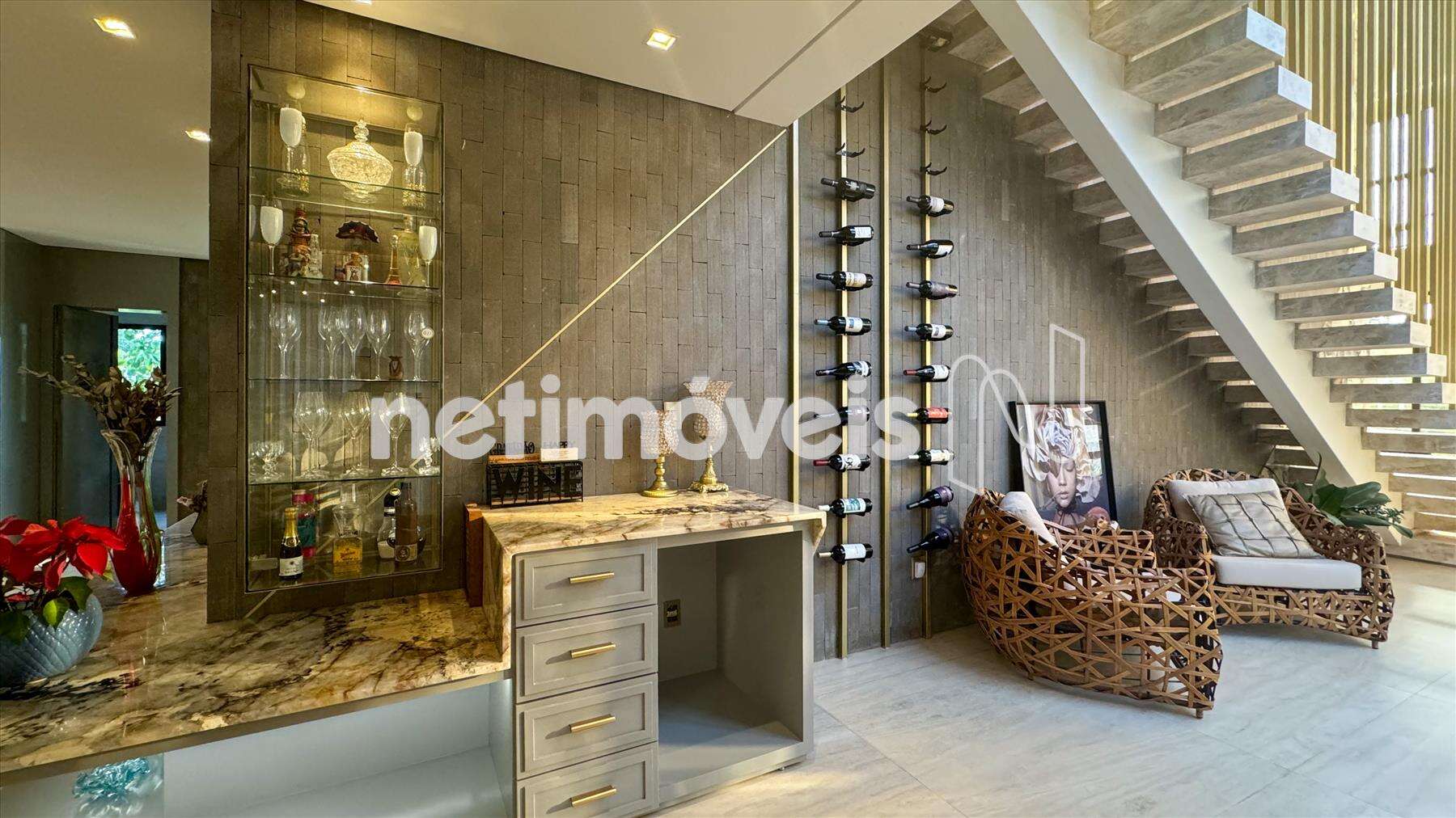 Casa de 4 quartos sendo 2 suítes e 2 semi-suítes com acabamento diferenciado, ao lado da portaria e fundo para a mata. Ampla sala com pé direito duplo, lareira retroiluminada em pedra natural (Quartzito White Patagônia) do chão ao teto. Salas de jantar, de TV e Cozinha integradas com Adega e Cristaleira em vidro. Todos os ambientes com acabamento no mesmo Quartzito e marcenaria impecável. Móveis com acabamento laqueado, iluminação planejada em led, bancada da cozinha com calha úmida em Corian. Área Gourmet com churrasqueira e pia em Corian. Belíssimo Lavabo interno com acabamento em filetes dourados e externo para atender a área de lazer. Ampla despensa, louceiro e área de serviço. Casa de Hóspedes (Edícula) com2 quartos, banho, cozinha e sala integrada. Estar íntimo no segundo pavimento e Night Kitchen.