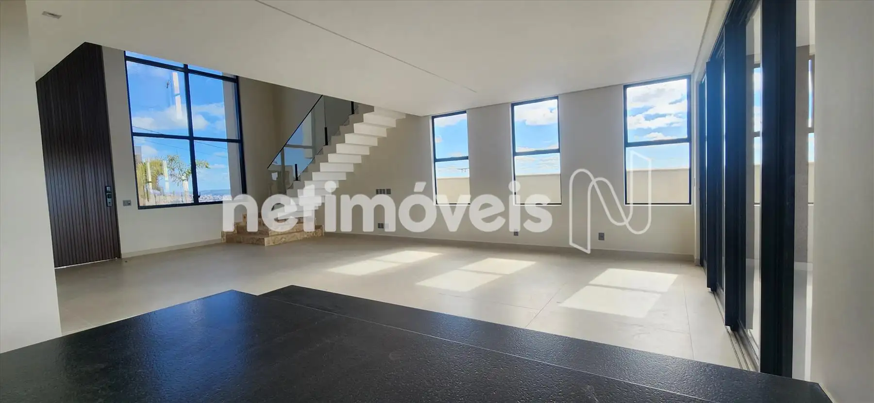 - 01 sala ampla com pé direito duplo, integrada com sala de jantar.