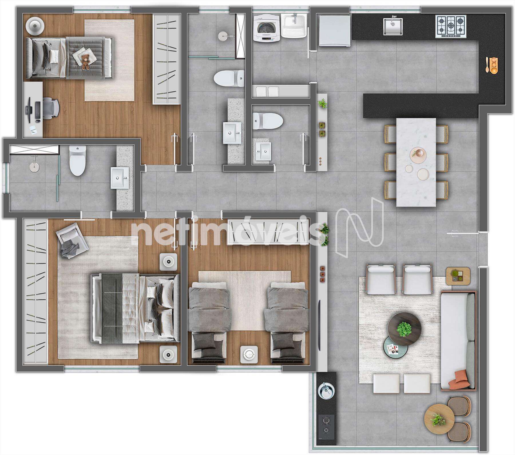 * 3 quartos sendo 1 suíte.