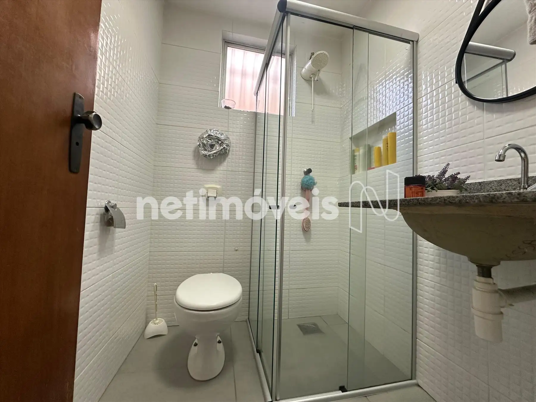 Banheiros completos. Com bancada em granito, espelhos e box;