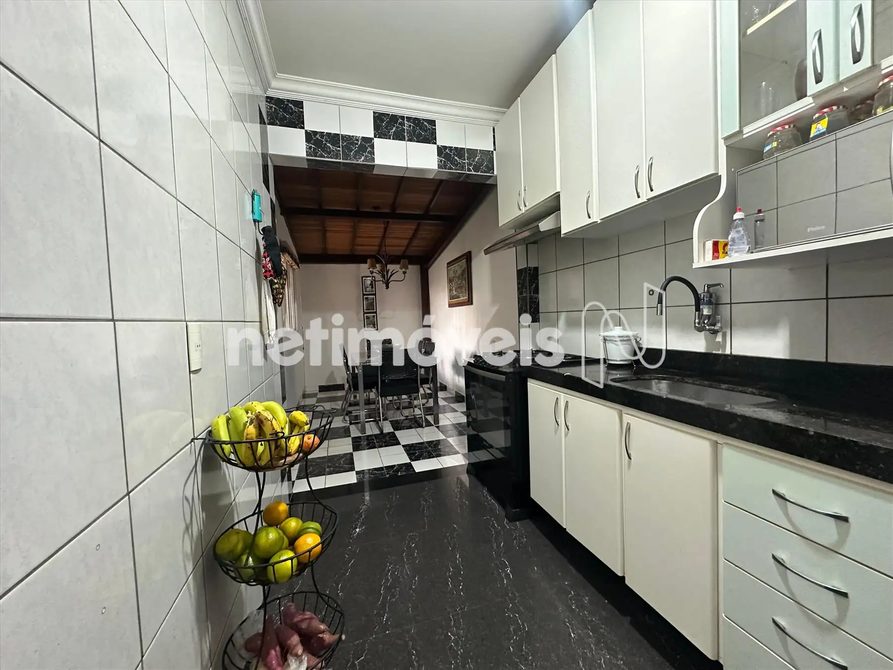 Cozinha funcional. Bancada em granito, armários e piso em porcelanato;