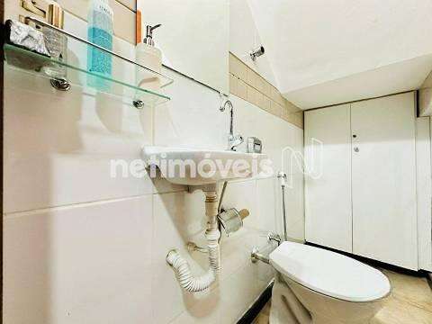 Banheiro social com box e armários;