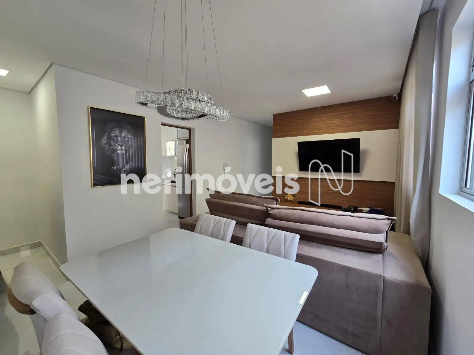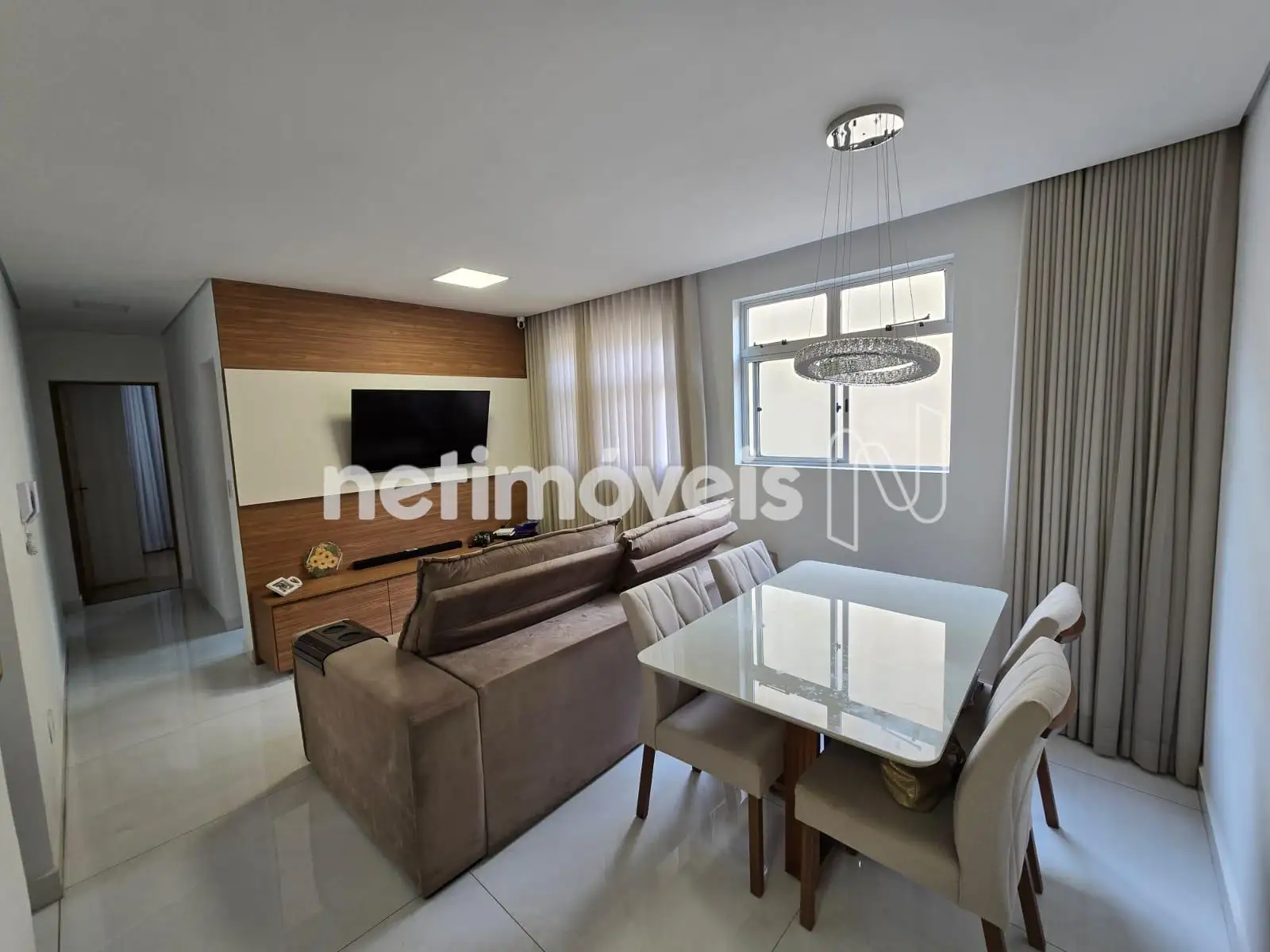 O imóvel possui 3 quartos, sendo 1 suíte, todos com armários. A sala é confortável e bem distribuída, com painel de TV instalado, e conta com piso em porcelanato, trazendo mais sofisticação e praticidade. Nos quartos, o piso é laminado, garantindo mais conforto térmico e aconchego.