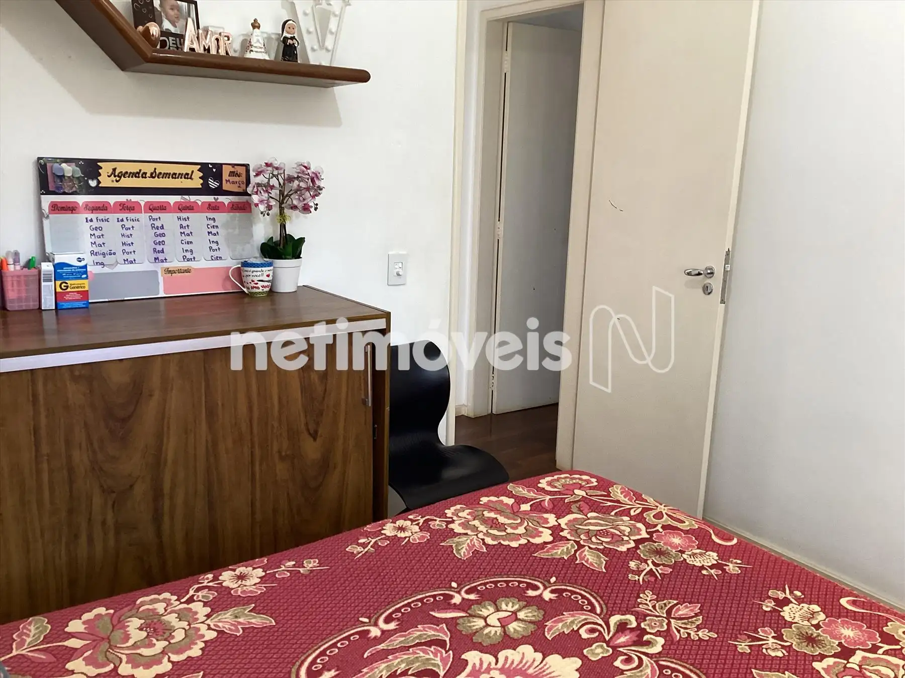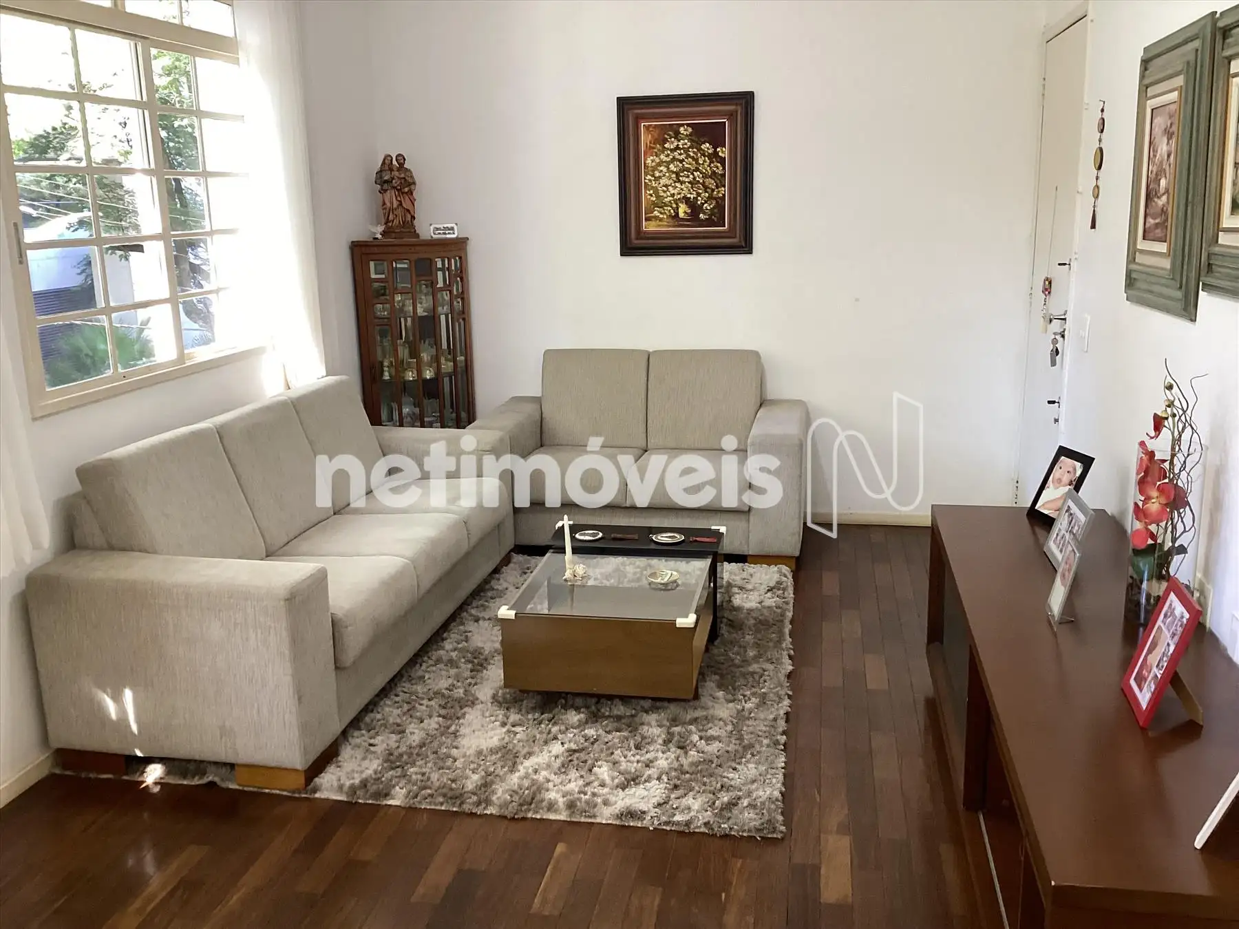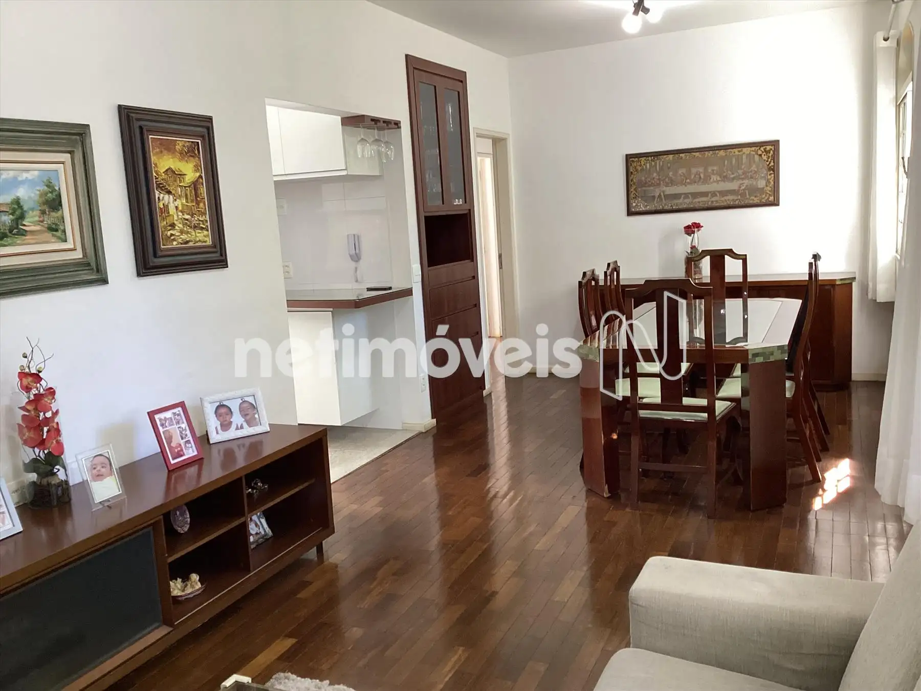 O apartamento é composto por uma sala bem arejada para dois ambientes e piso em tábua corrida.