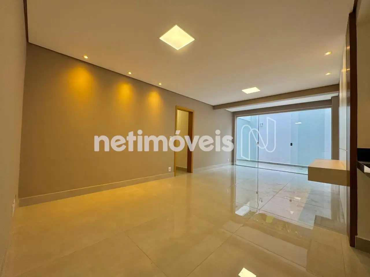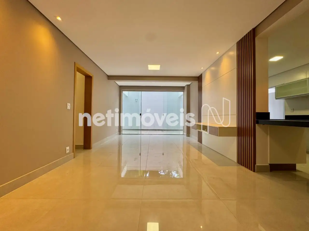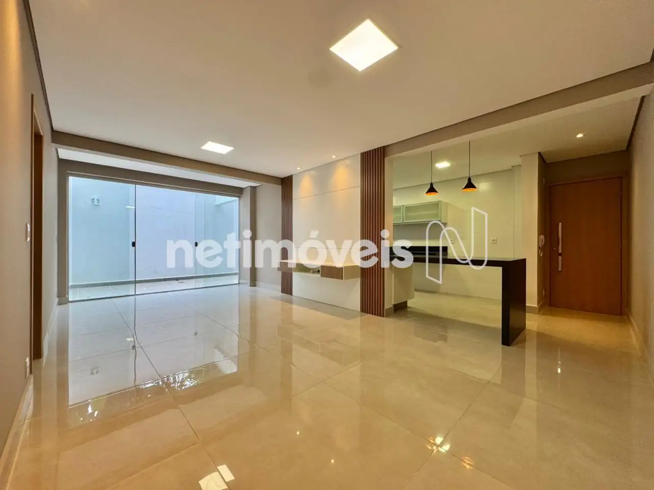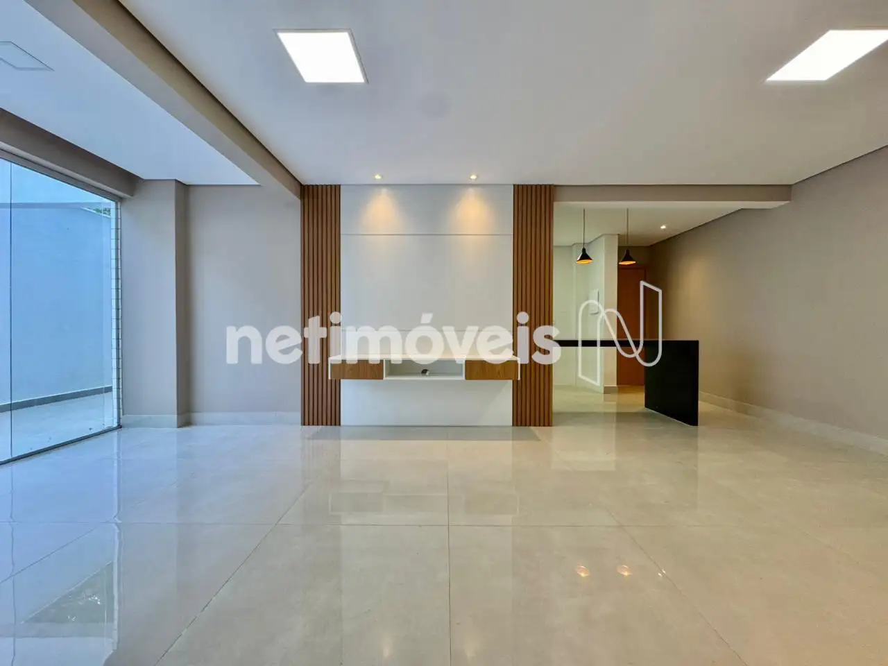 Sala para 2 ambientes com varanda, iluminação embutida, painel;