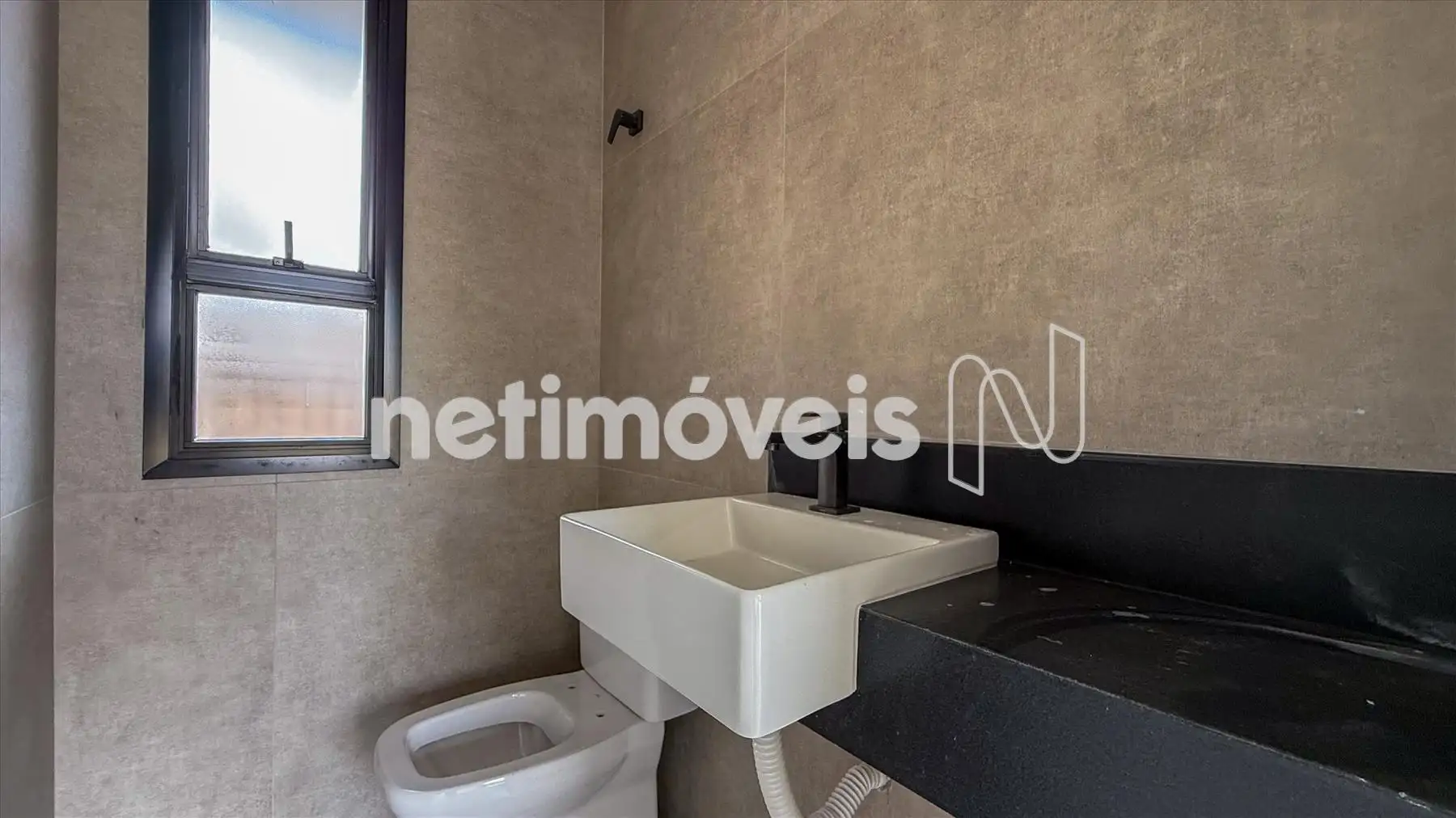 A cozinha é clara, arejada e funcional, equipada com bancada em granito negro, ideal para quem valoriza praticidade sem abrir mão da elegância. Ao lado, a área de serviço oferece organização e praticidade ao dia a dia.