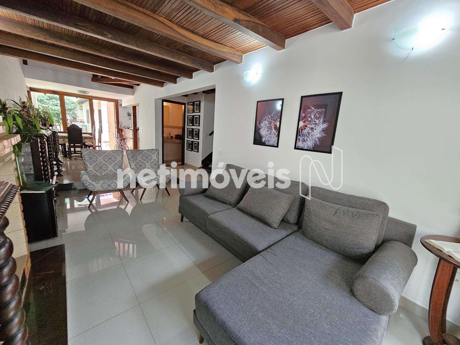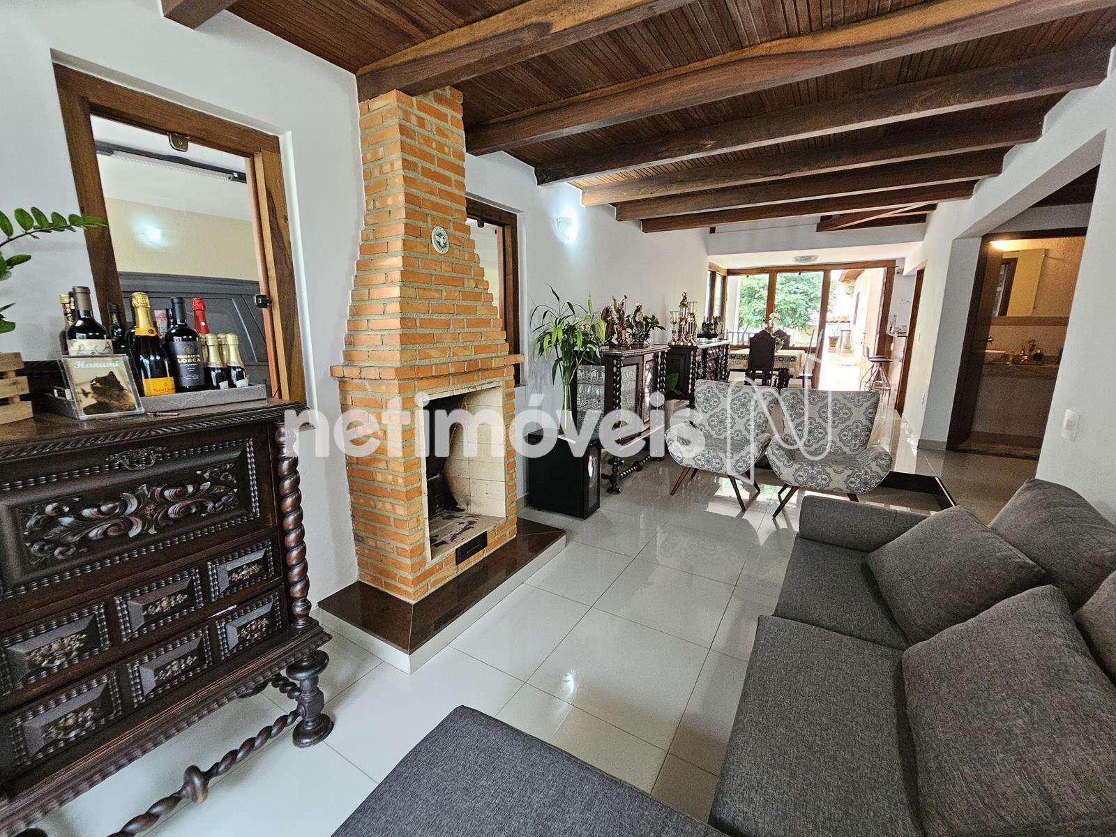 - Sala ampla para 02 ambientes, piso em porcelanato, lareira, esquadrias de madeira nobre