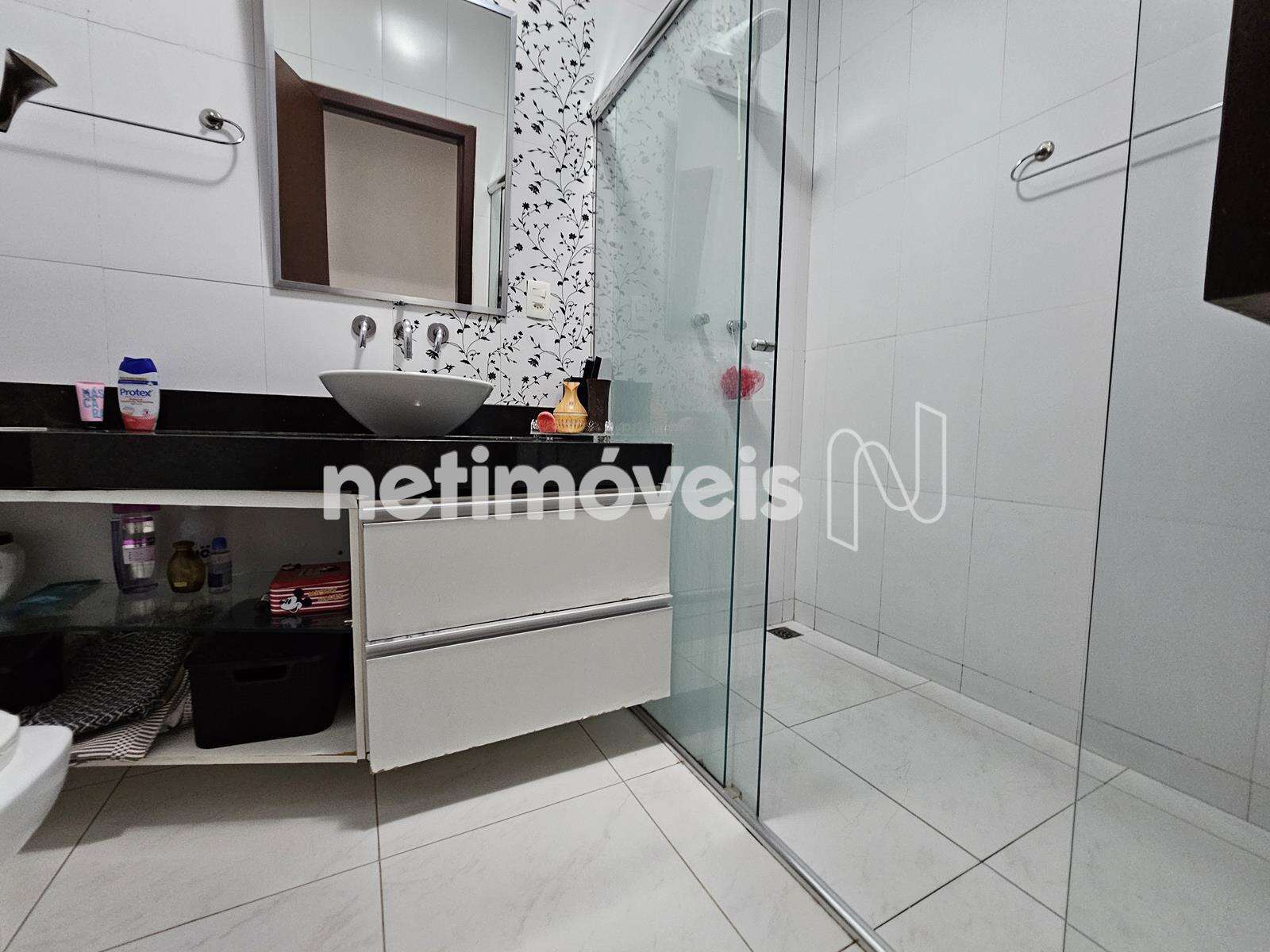- 01 Banheiro social com armários e piso em porcelanato