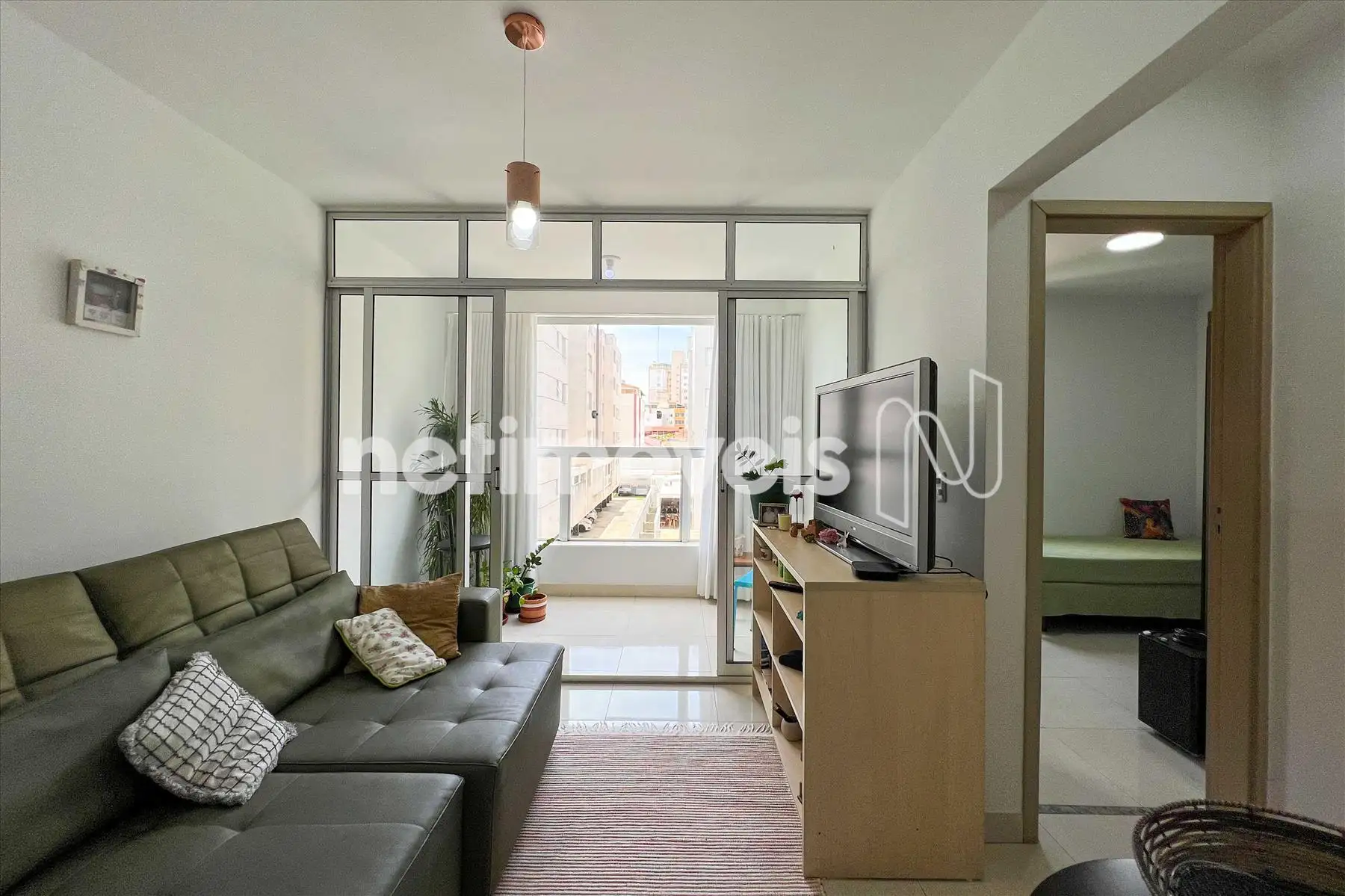 - O apartamento conta com sala para 02 ambientes integrada a uma varanda com fechamento em vidro, proporcionando conforto e ótima iluminação natural. A cozinha com armários planejados é funcional e possui área de serviço independente. São 02 quartos, sendo 01 suíte, além de banho social bem distribuído. O imóvel dispõe de 02 vagas de garagem paralelas e demarcadas.