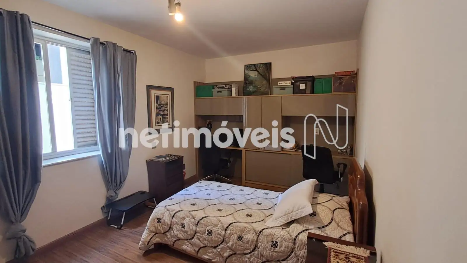 Amplos quartos de solteiro com armários, suíte de casal com closet piso e bancadaa em granito, box em vidro temperado.
