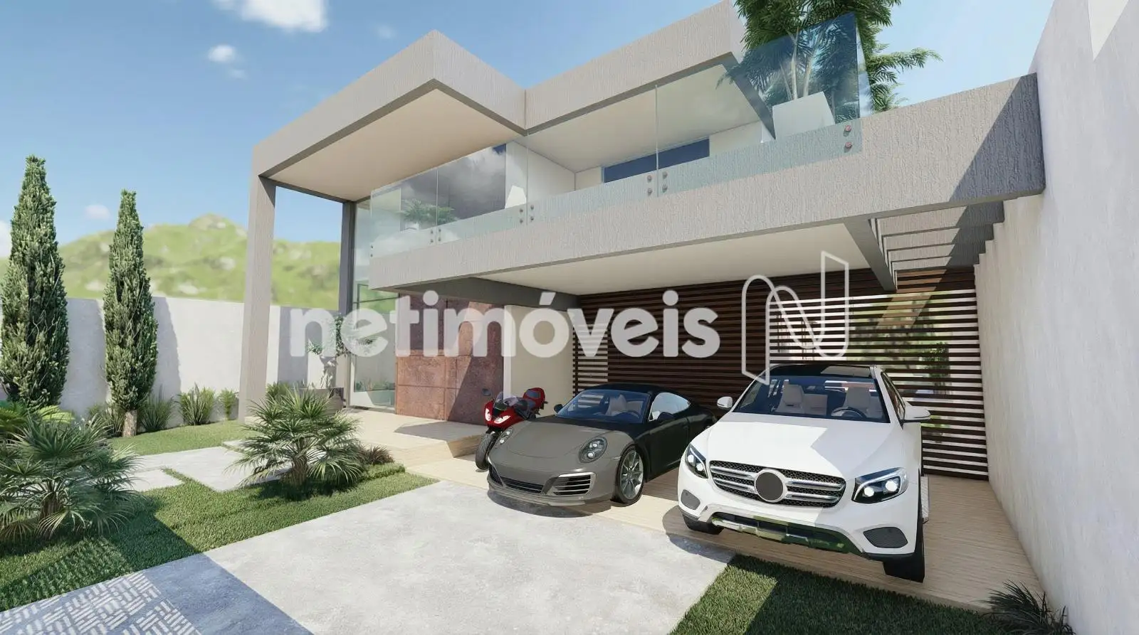 Garagem para 3 carros cobertos e 1 descoberto e tomada para carro elétrico.