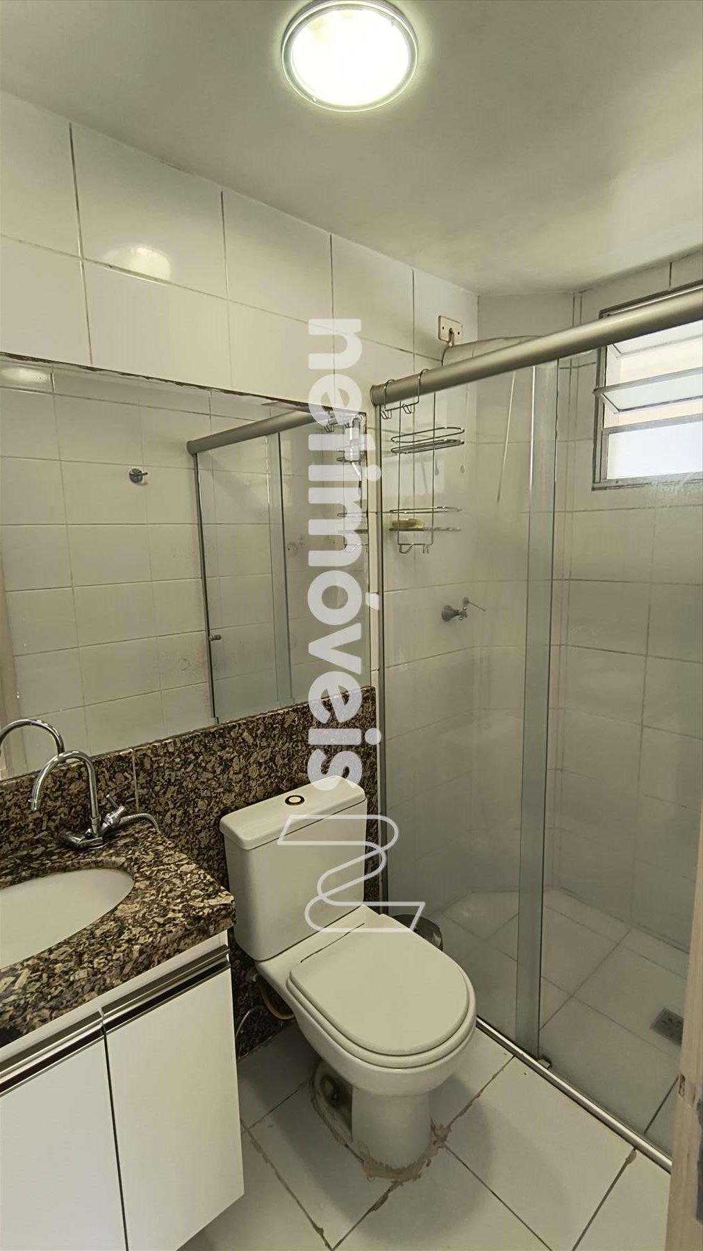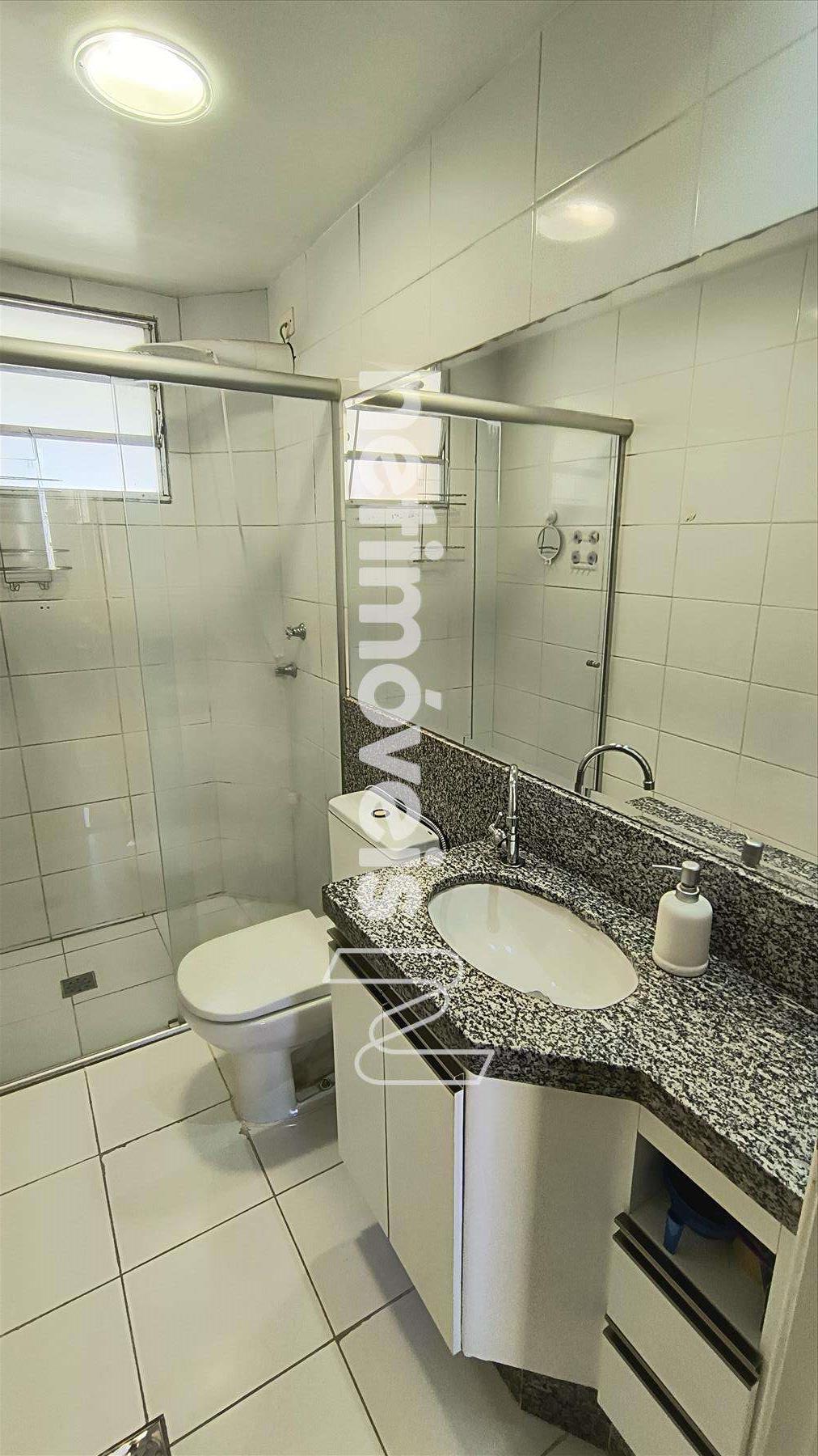 02 banhos (01 social – 01 suíte), pisos em cerâmica, box com vidro temperado, armários.