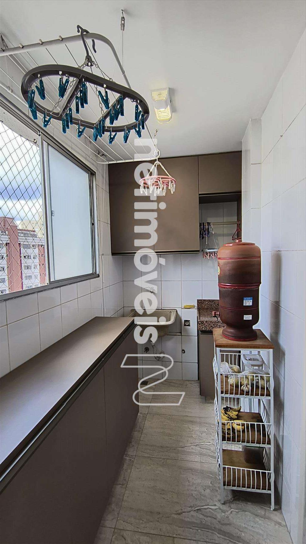 Área de serviço independente, piso porcelanato, armário.