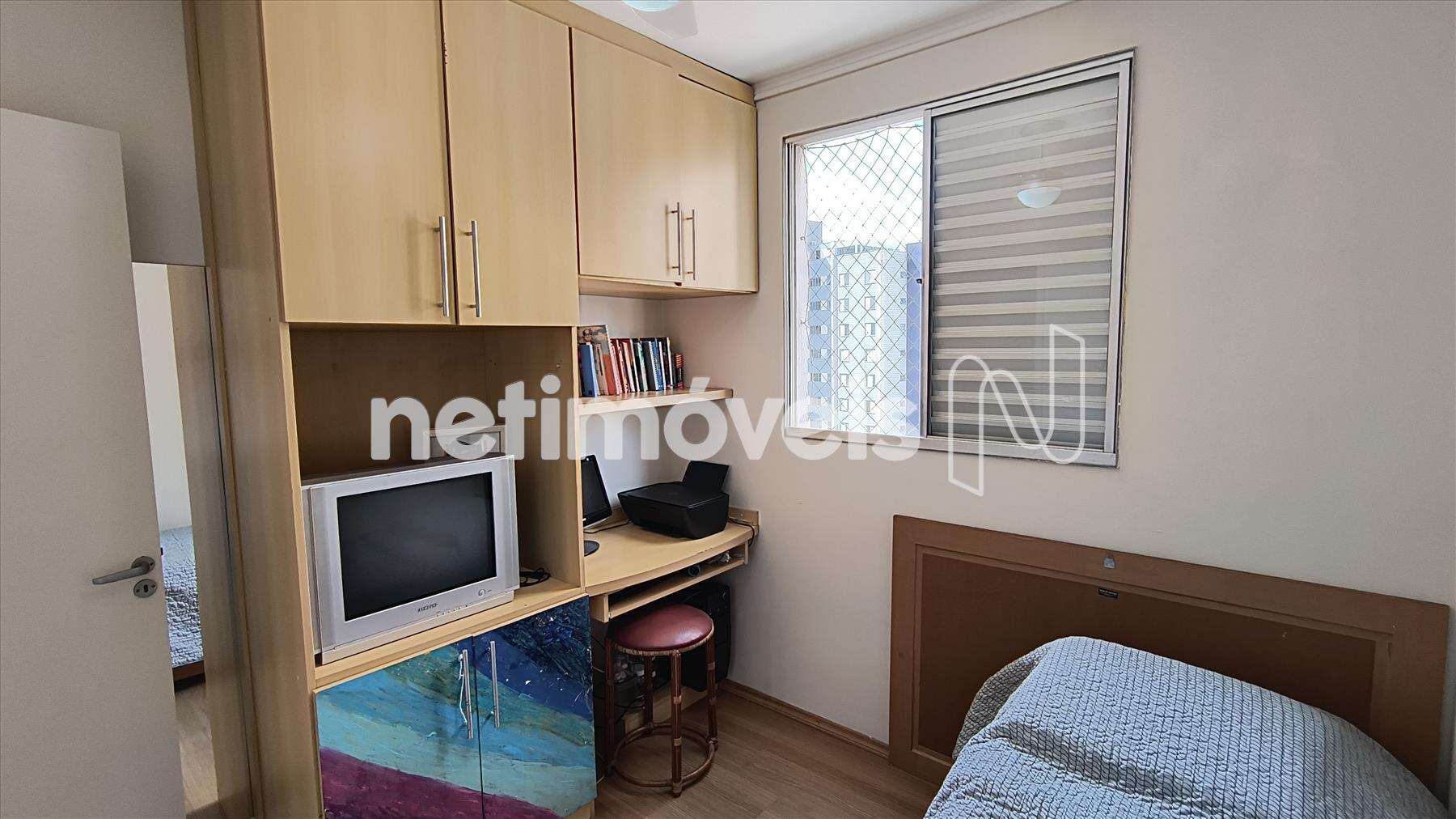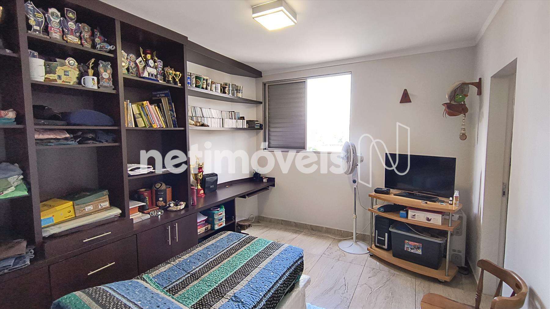 01 quarto (suíte) (escritório) piso porcelanato, armário/estante.