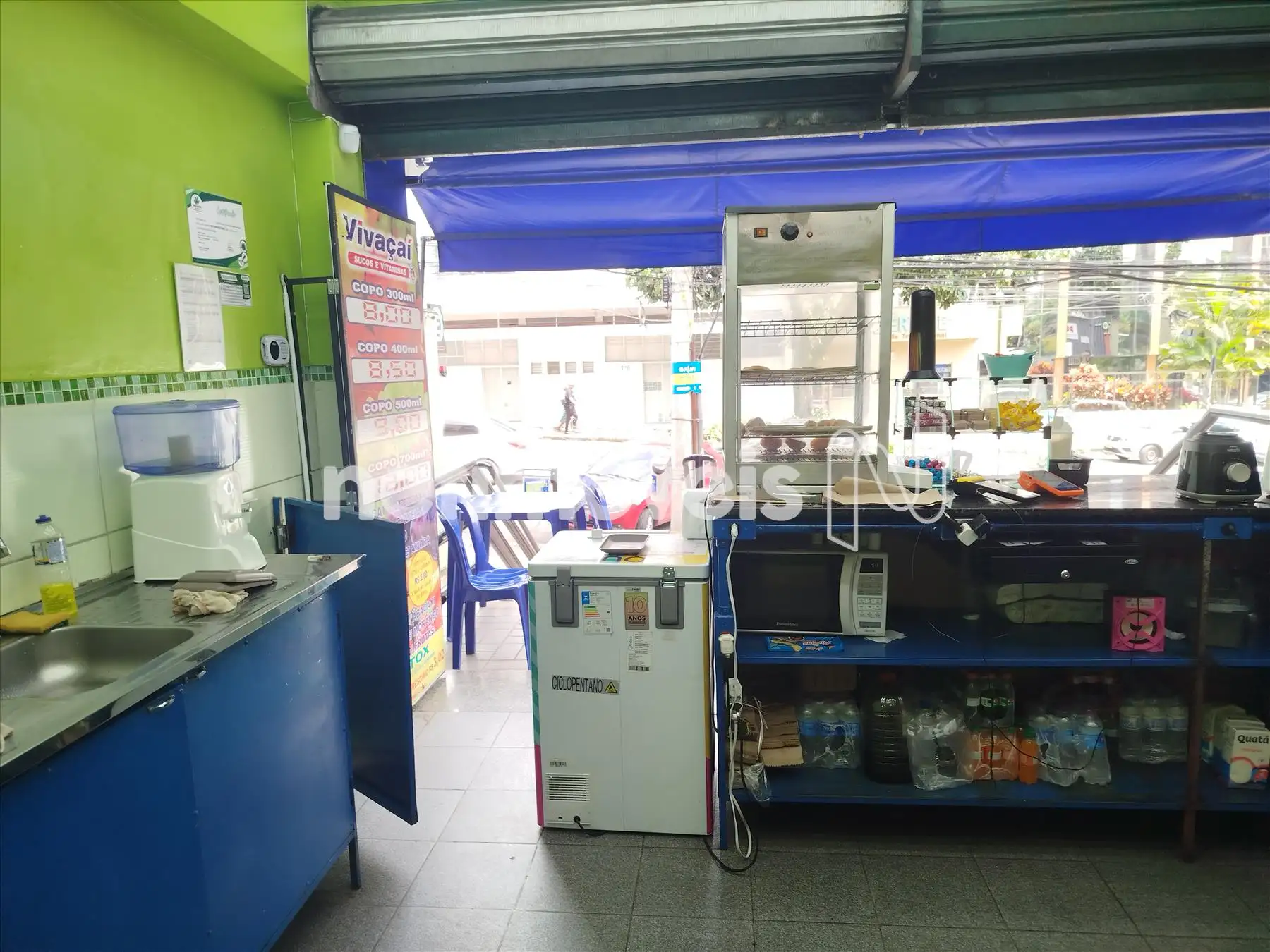 Loja de frente para rua com 52m², com mezanino de 18m², cozinha industrial com coifa, várias tomadas elétricas, dois banheiros, vitrine lateral a porta. No primeiro piso um banheiro, duas portas de aço.corredor lateral um otimo espaço interno, mesanino montado cozinha industrial, condominio incluso água no valor, ponto de ônibus, ótimo ponto comercial,