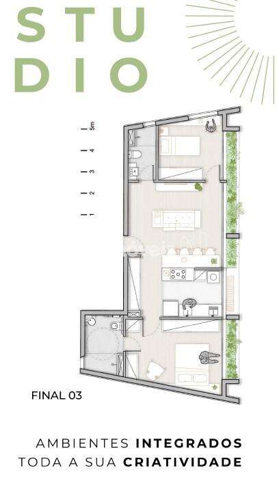 - Estilo Studio com planta aberta e flexível