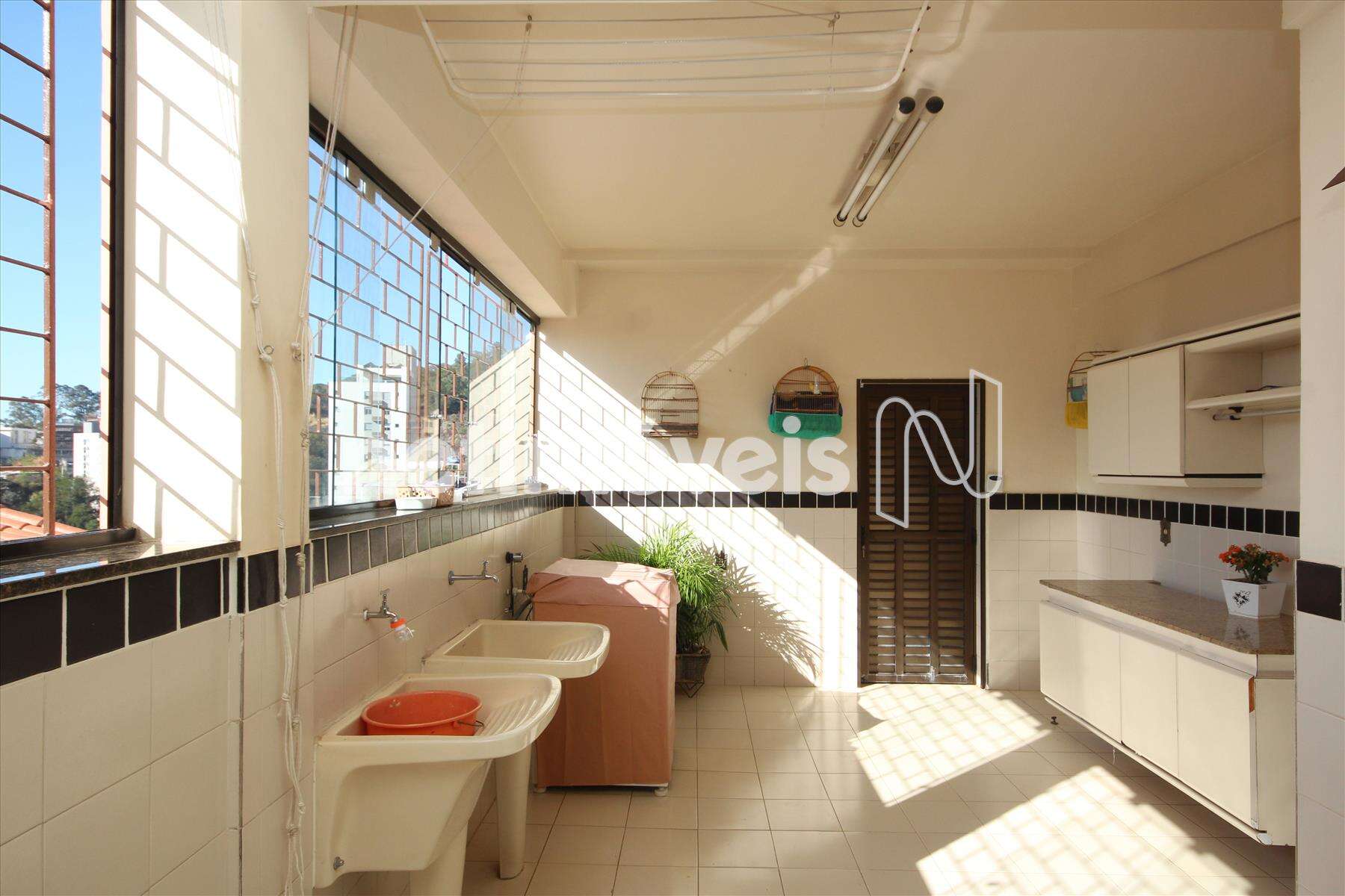 Rouparia, 4 quartos com armários sendo 1 suíte máster com closet espaçoso, piso em tábua corrida, banheira de hidromassagem e varanda.