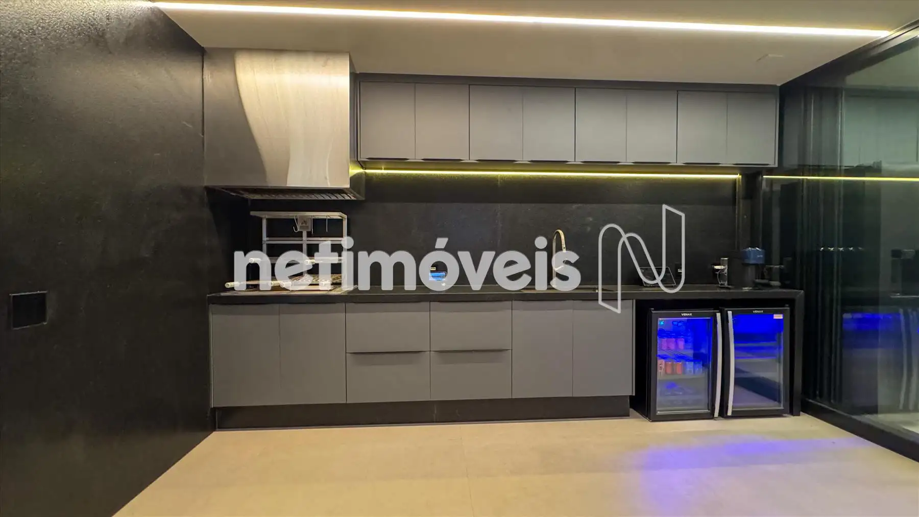 Principais eletrodomésticos: Geladeira Side by Side, coifa, fogão Cooktop, forno, microondas, lava-louças, churrasqueira, cervejeira e adega;