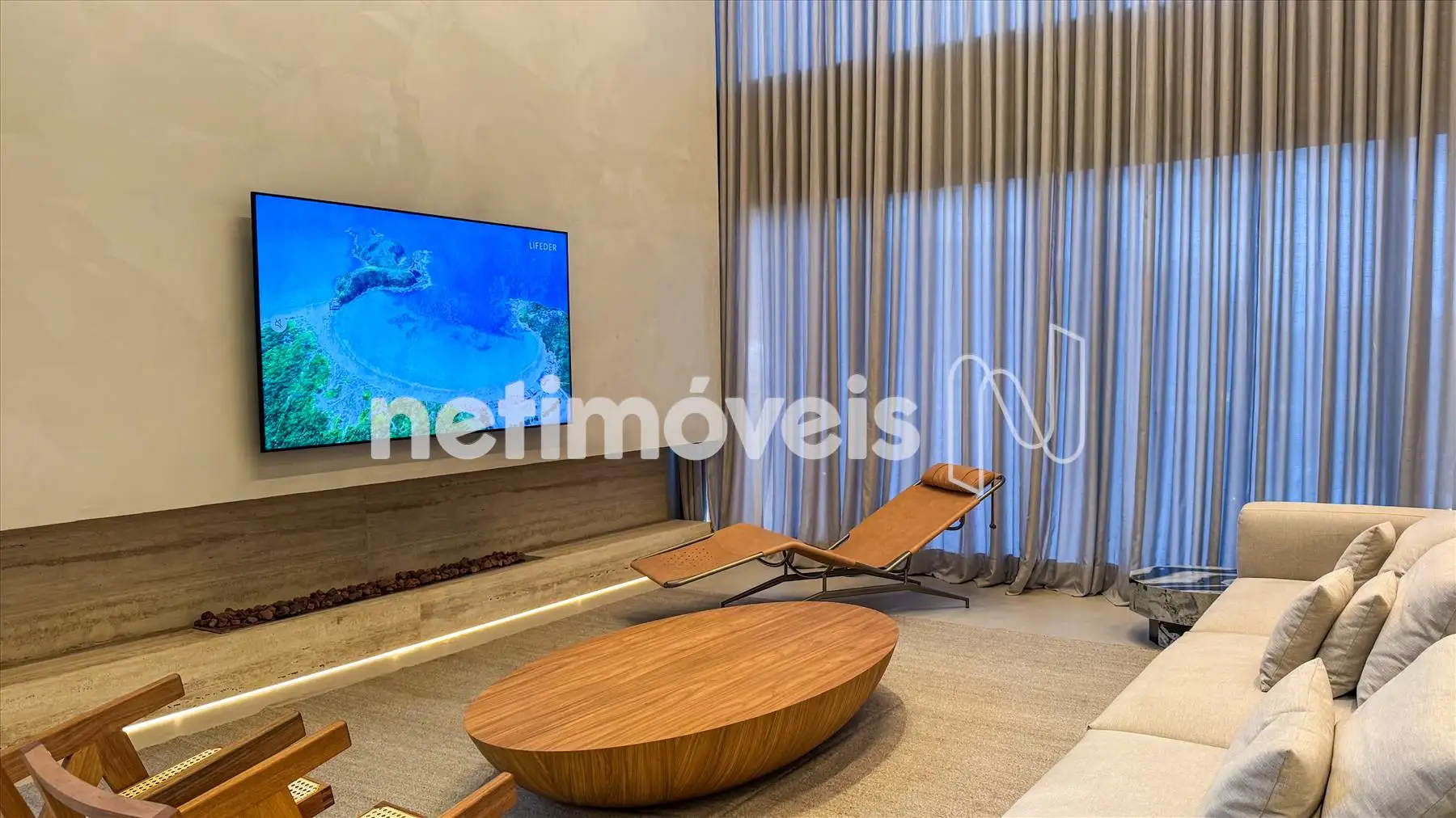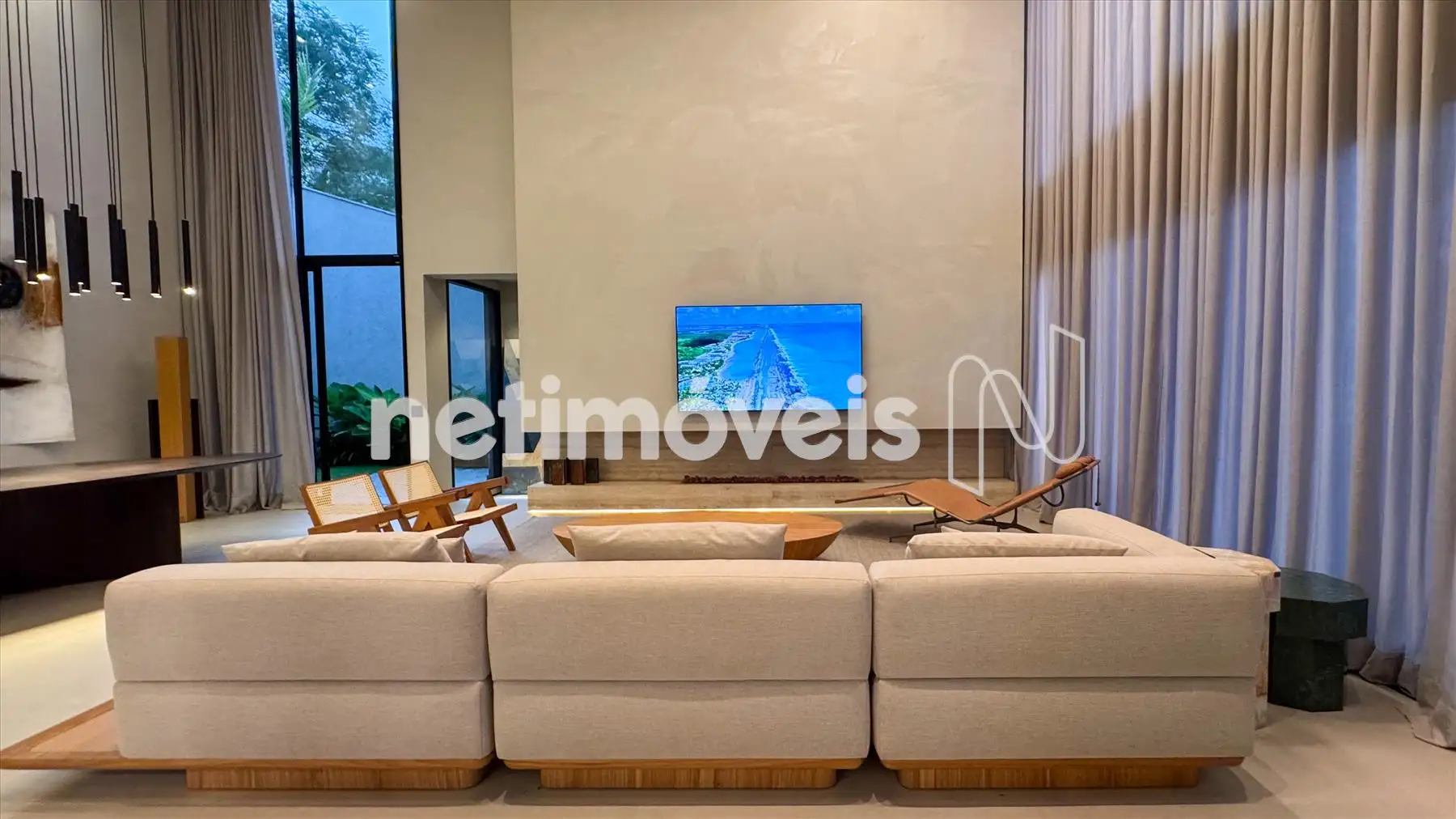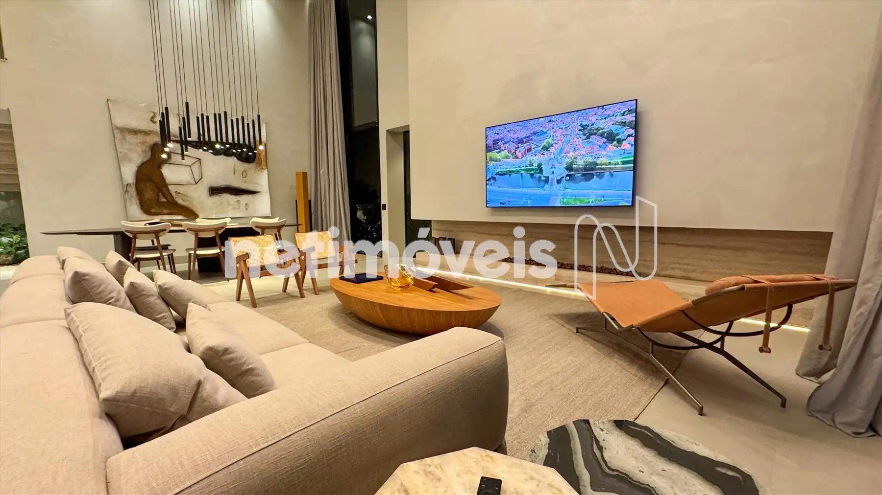 Espaço social e lazer integrados em conceito aberto e pé direito duplo com sala de jantar, sala de estar, lareira ecológica, sala de tv, cozinha gourmet, espaço gourmet (sistema de som no teto) e lavabo;