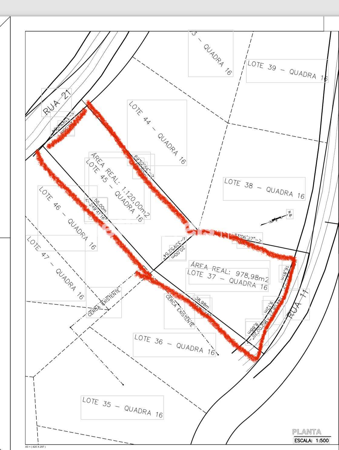 São dois lotes com matrículas individualizadas. Proprietário só se interessa por venda conjunta dos dois lotes, sendo um de 1.175m² e outro de 1.120m².