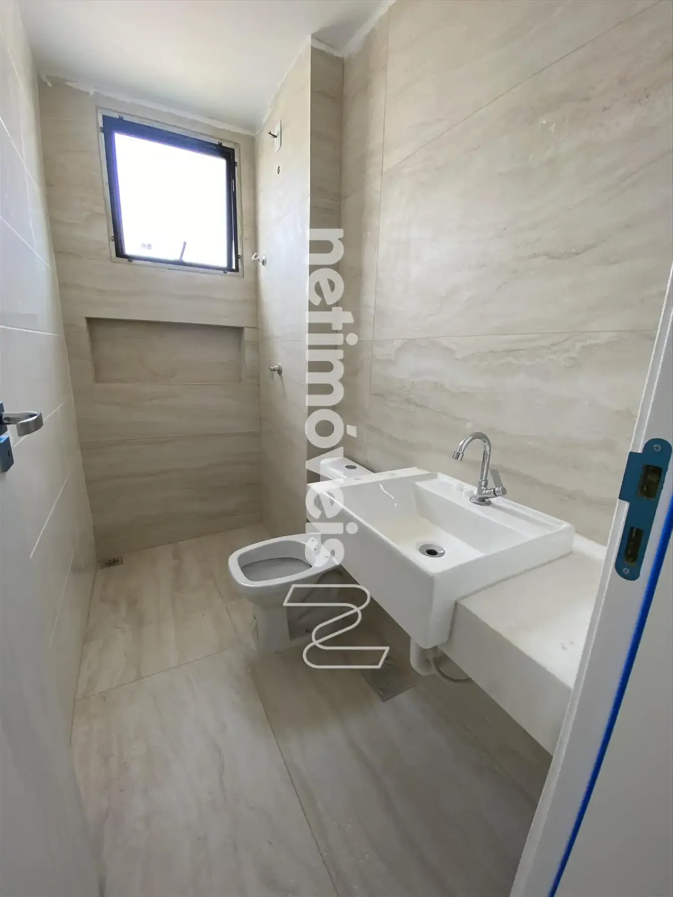 Banho social e suíte com piso em porcelanato