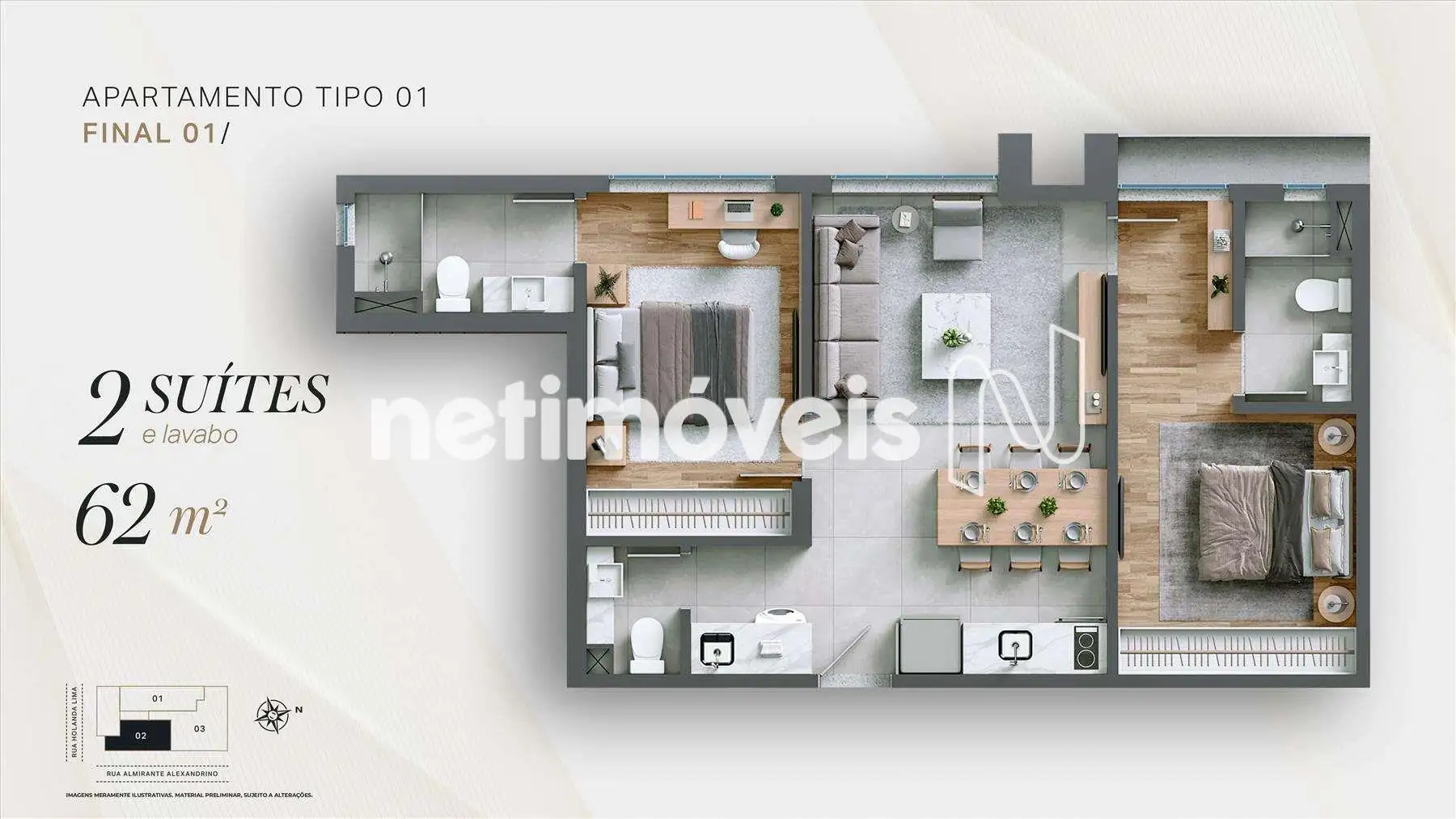 Apartamento com 2 suítes e lavabo com 64,19m²
