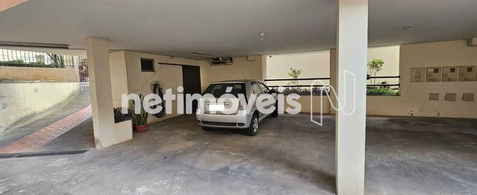 2 vagas de garagem demarcadas e cobertas que comporta até 3 automóveis pequenos.