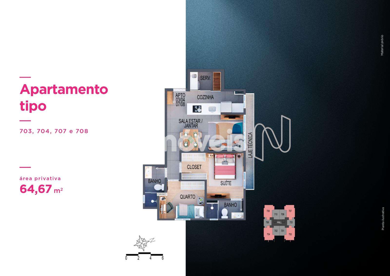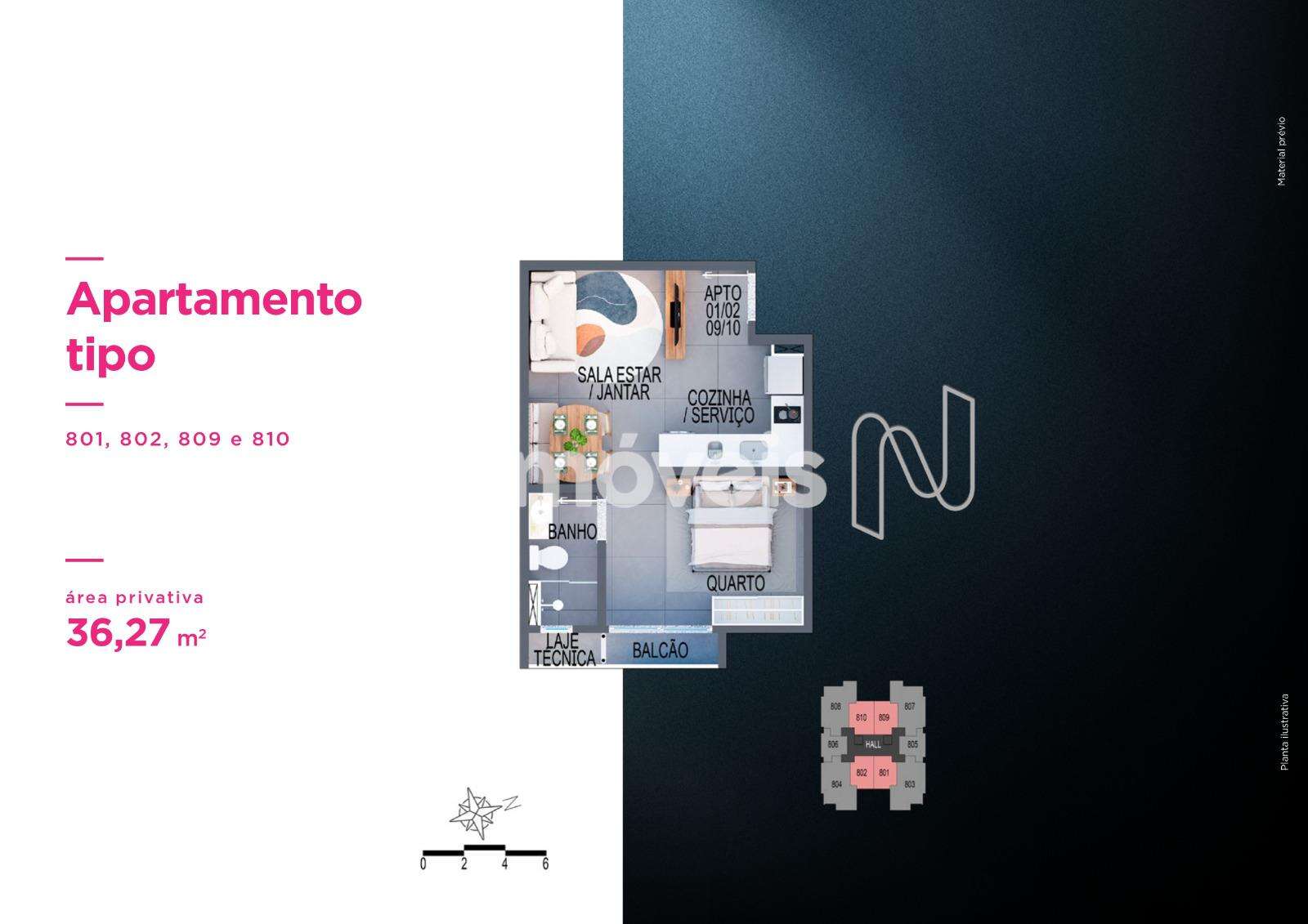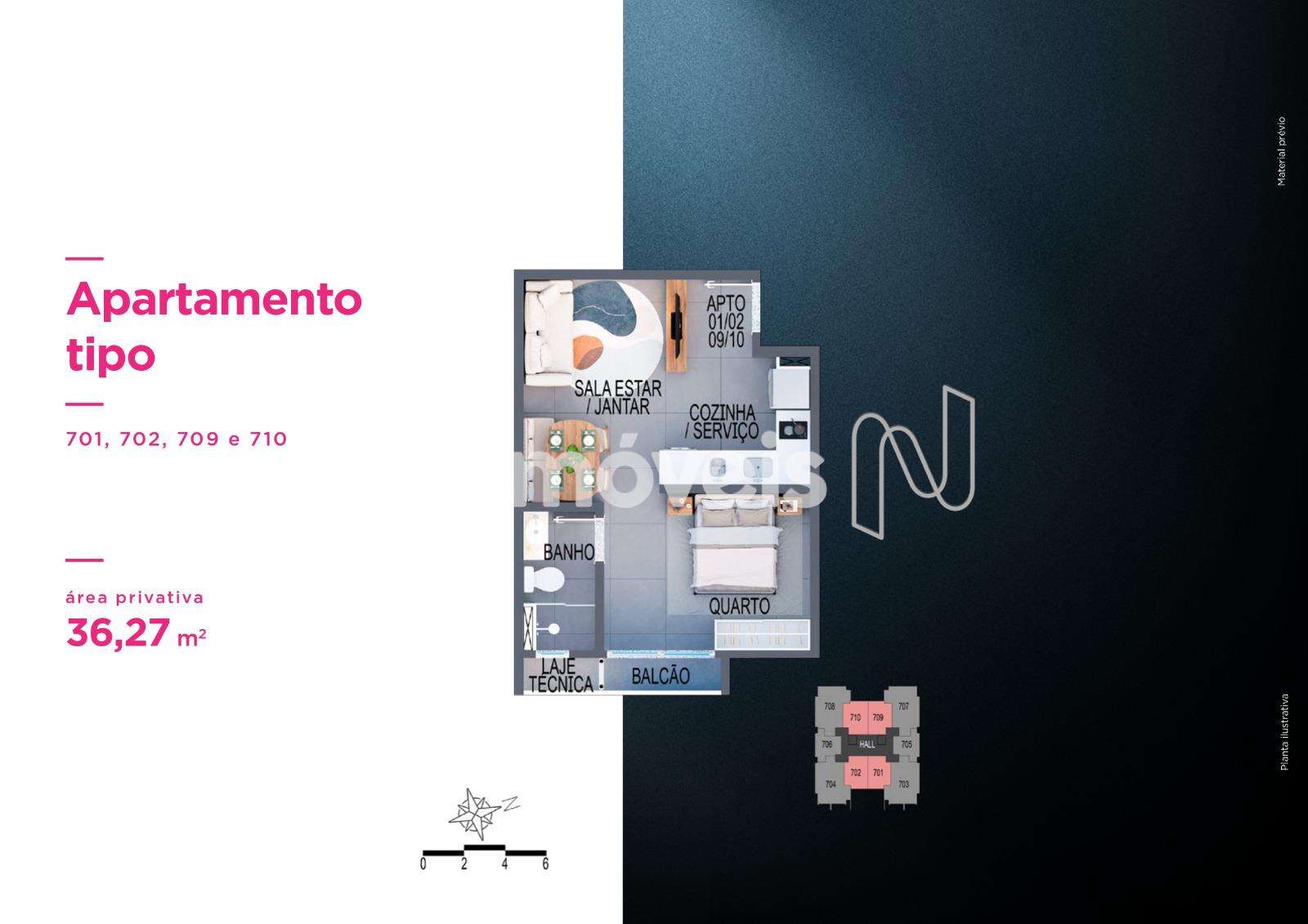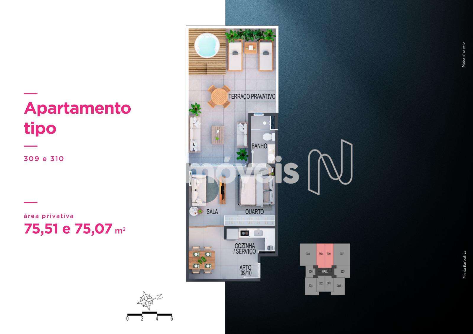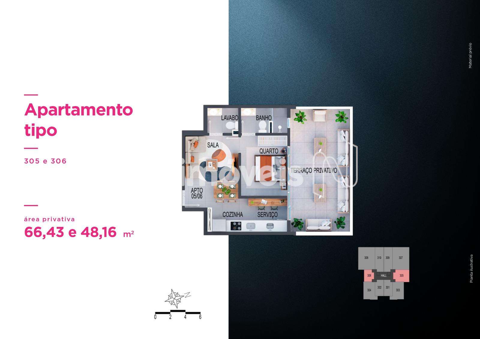 Apto de 1 ou 2 qts de 31 a 102m2, 66 unidades residenciais, lazer diferenciado no Rooftop, 11 pavimentos, 10 unidades por pavimento tipo, 4 unidades duplex e 2 coberturas lineares, 2 elevadores sociais