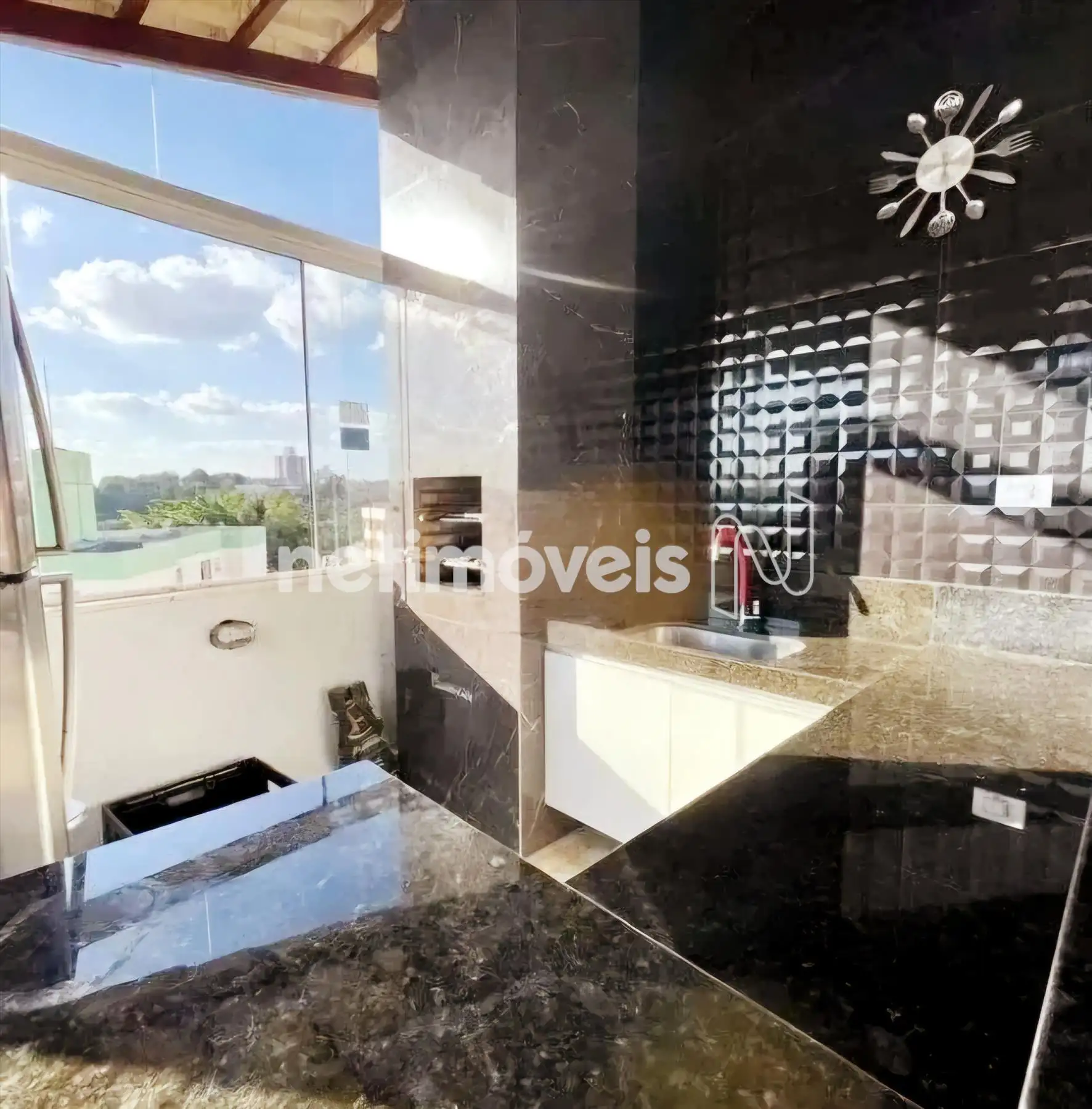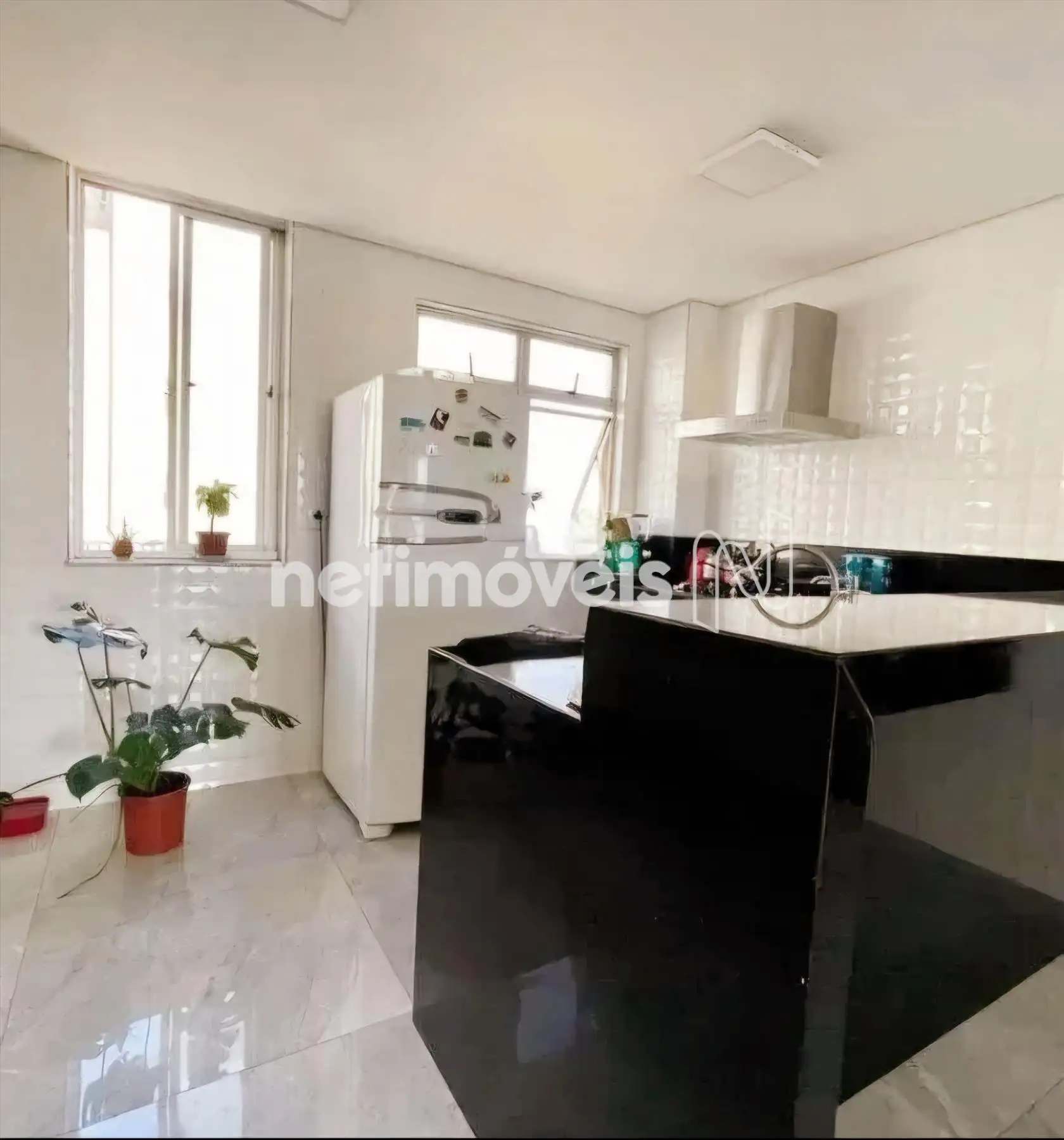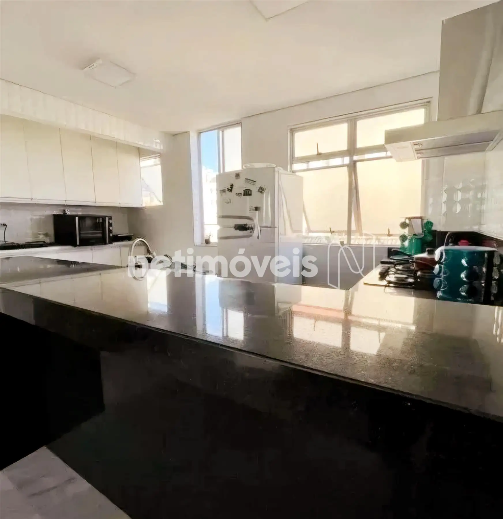 - Cozinha com paredes revestidas, armários e bancada em granito;