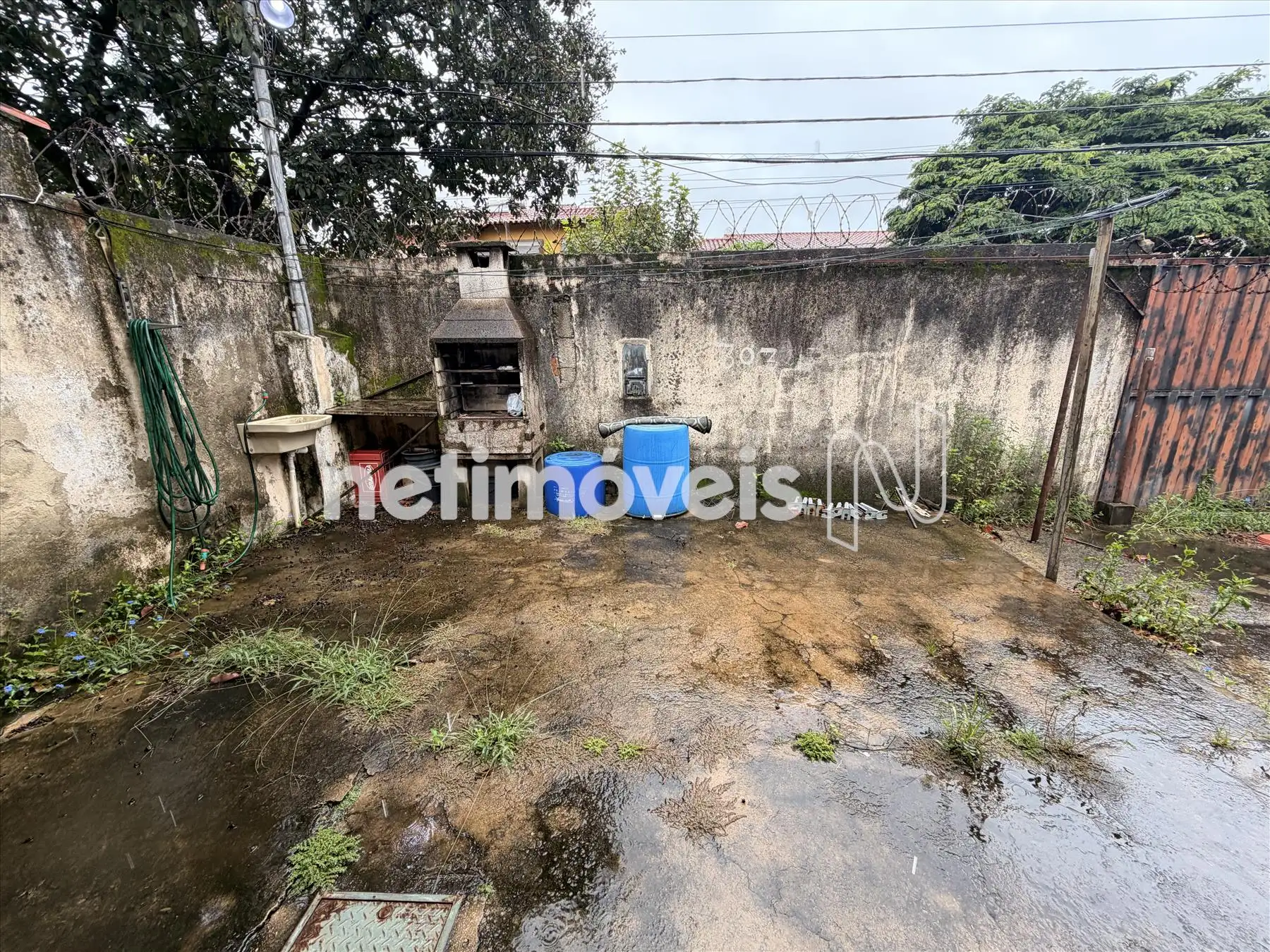 quintal com 3 vagas de garagem.