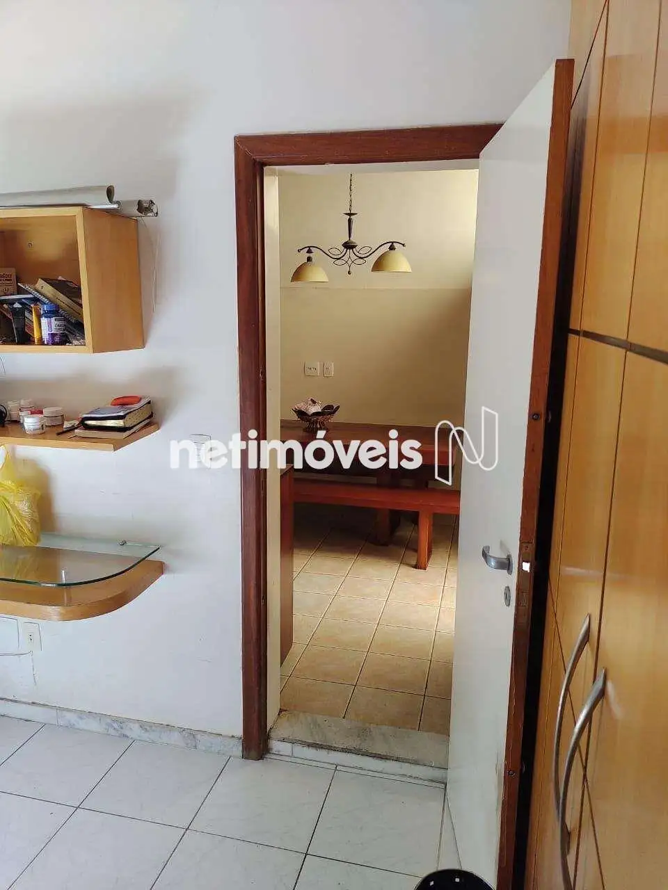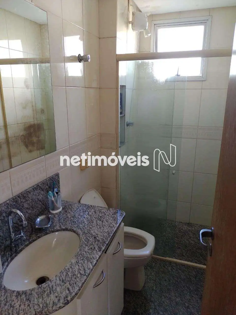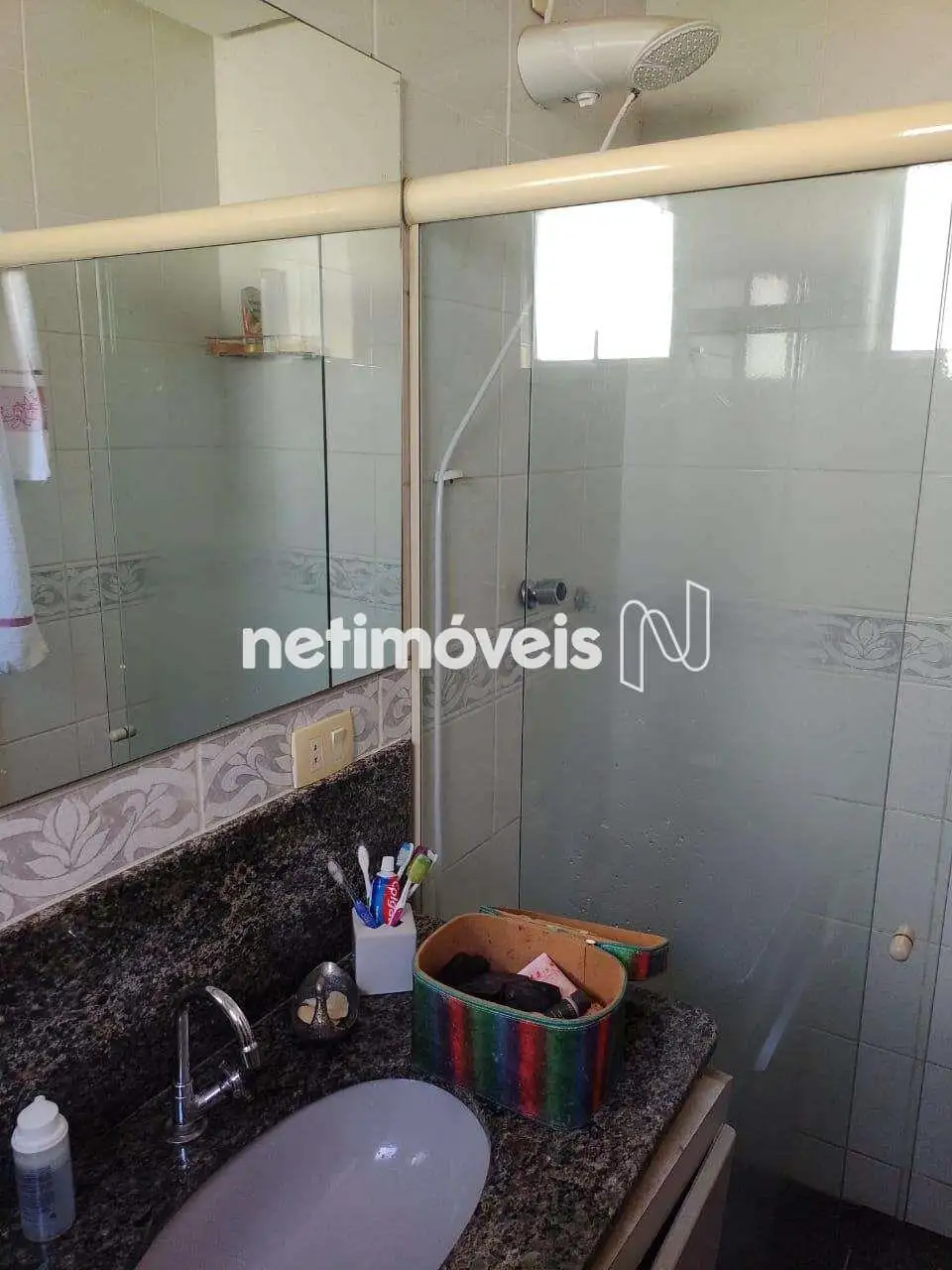 - Banho social com armários, espelho, box blindex