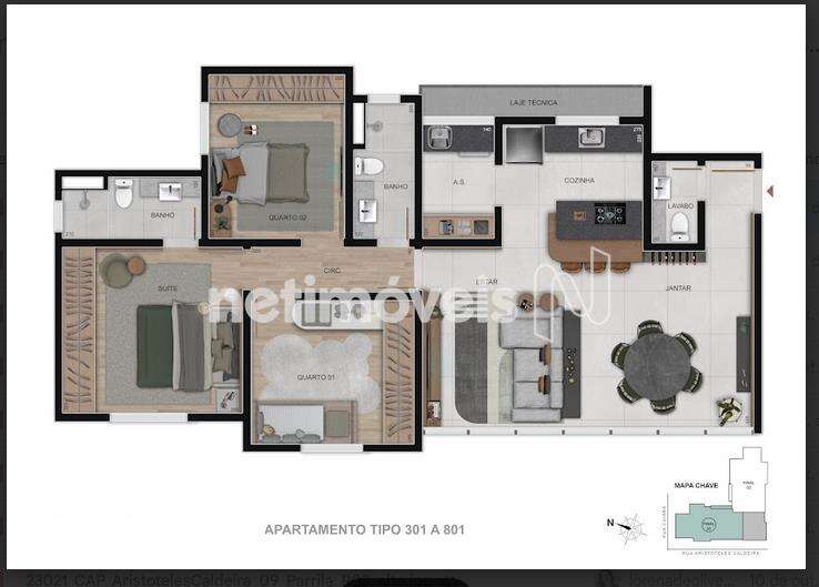 Salão para 2 ambientes, infraestrutura para a-condicionado, lavabo, 3 quartos, suíte com closet, banho social, cozinha americana, área de serviço.
