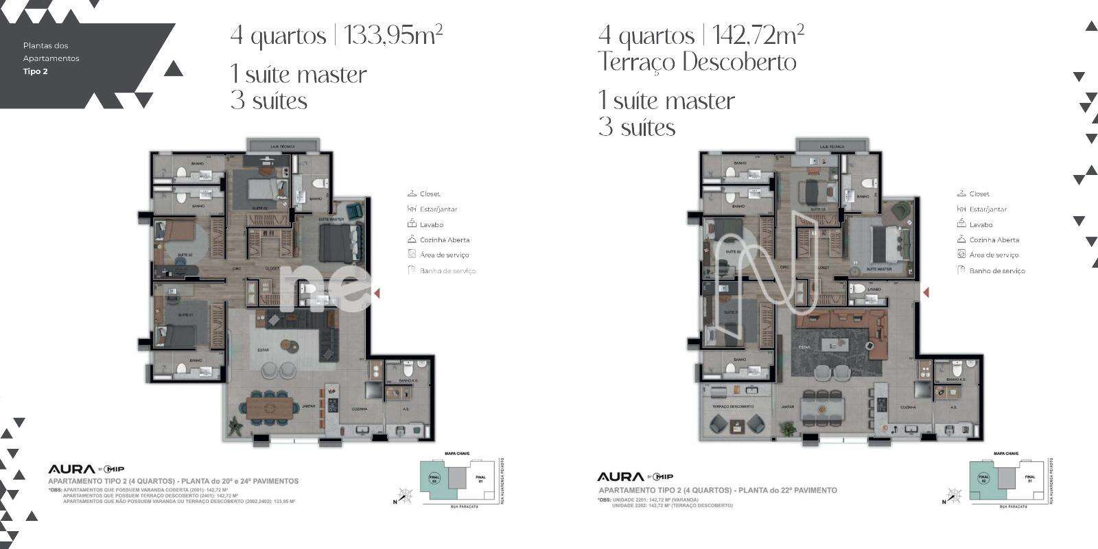 - Aptos que possuem terraço descoberto: 1802, 2202, = 142,72m2