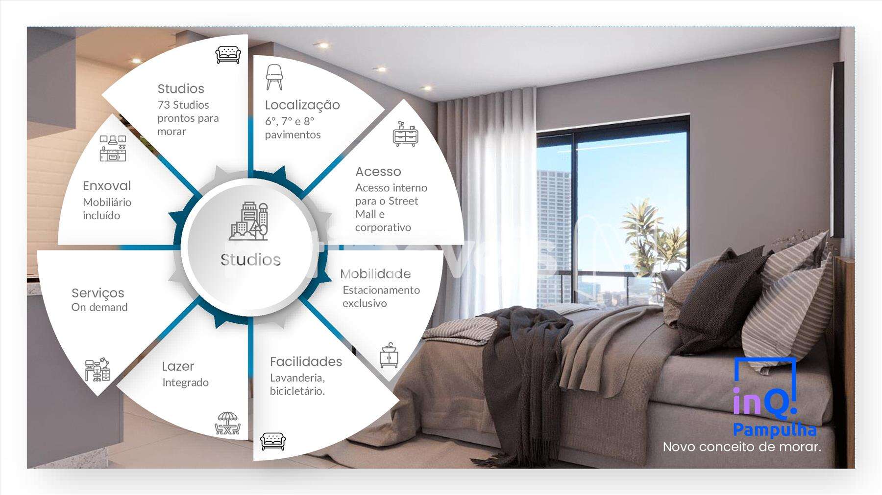 O Inq Pampulha faz parte do maior Mixed Use da Pampulha. São 73 Studios, mobiliados, decorados e pronto para morar, localizados nos andares superiores do VETTORE MALL Abrahão Caram, o Inq Pampulha proporciona a oportunidade de morar, trabalhar e se divertir em um único local, onde o meio de transporte passa ser… o elevador! Uma nova forma de morar com muitas comodidades para você